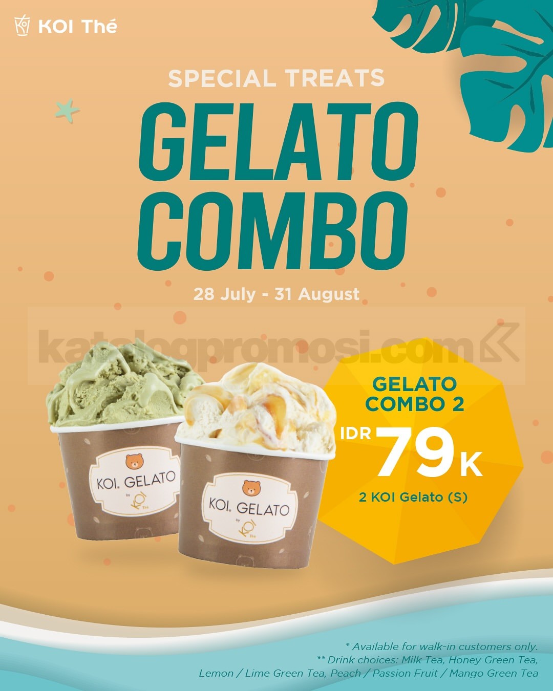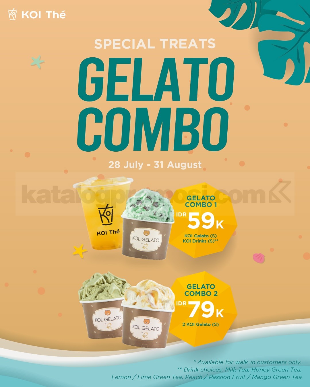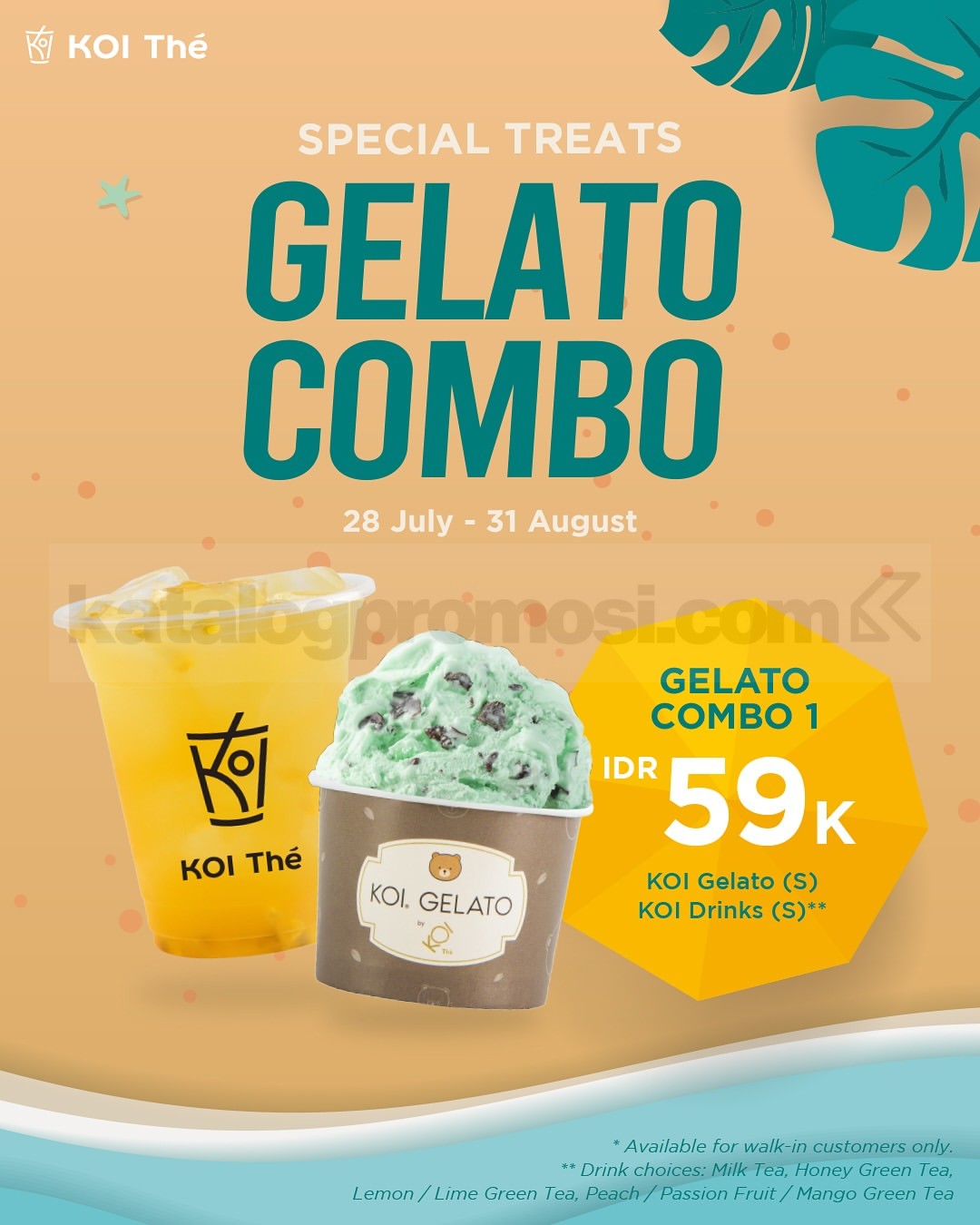 Promo KOI Thé Gelato Combo mulai Rp59.000 untuk pilihan minuman dan gelato favorit, tersedia khusus di KOI Gelato store. Berlaku untuk pembelian langsung di outlet.