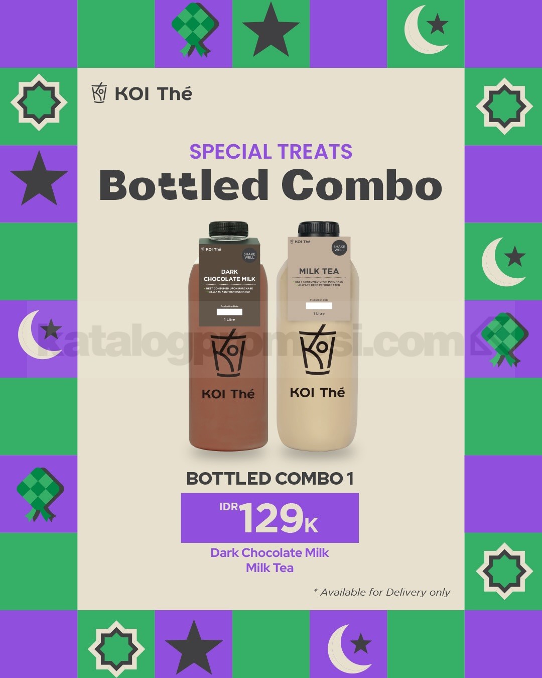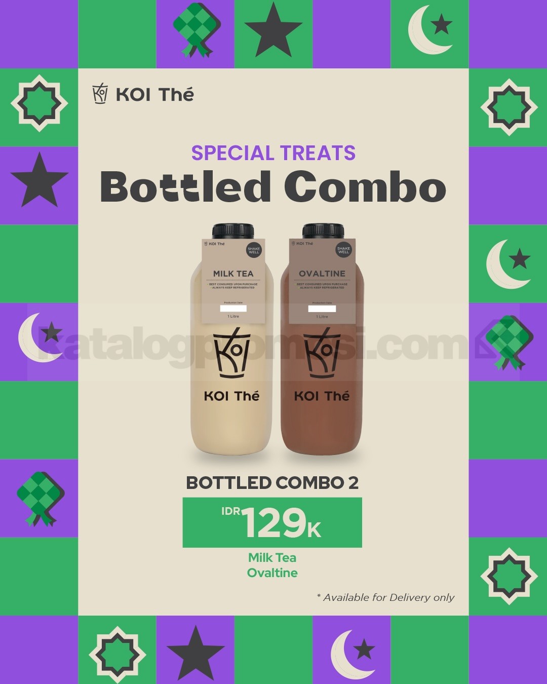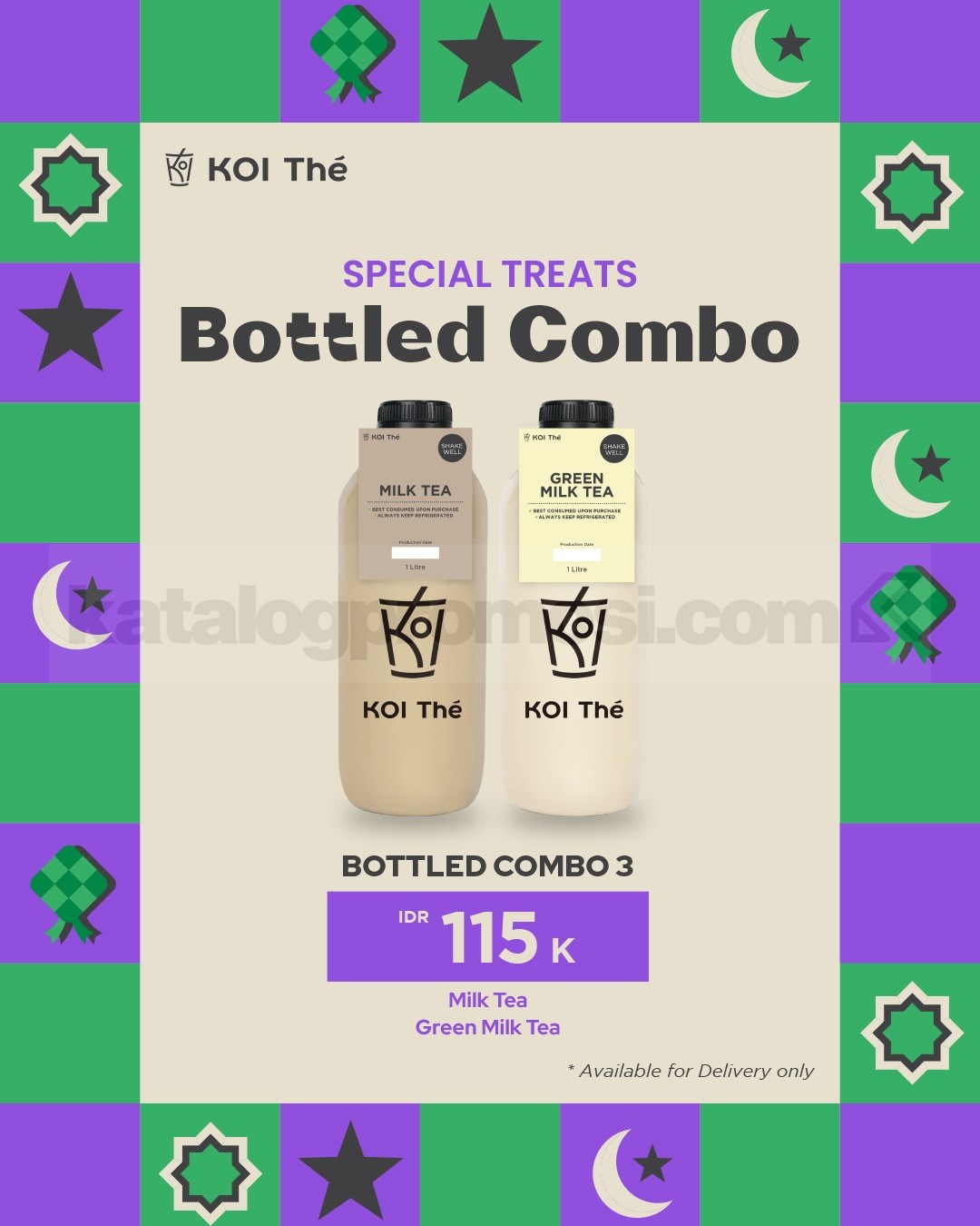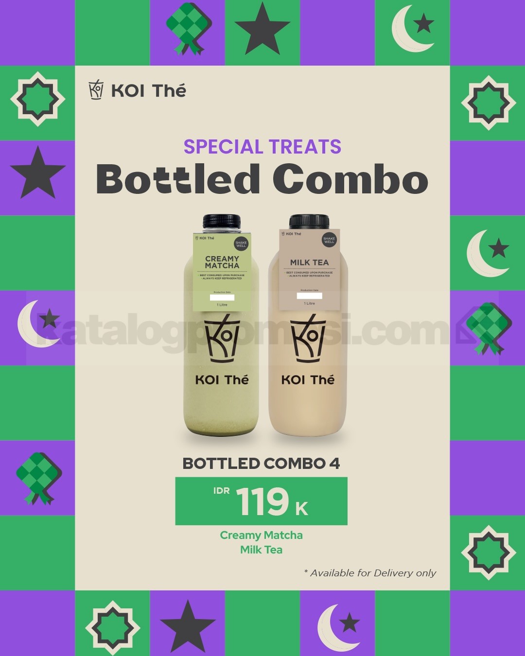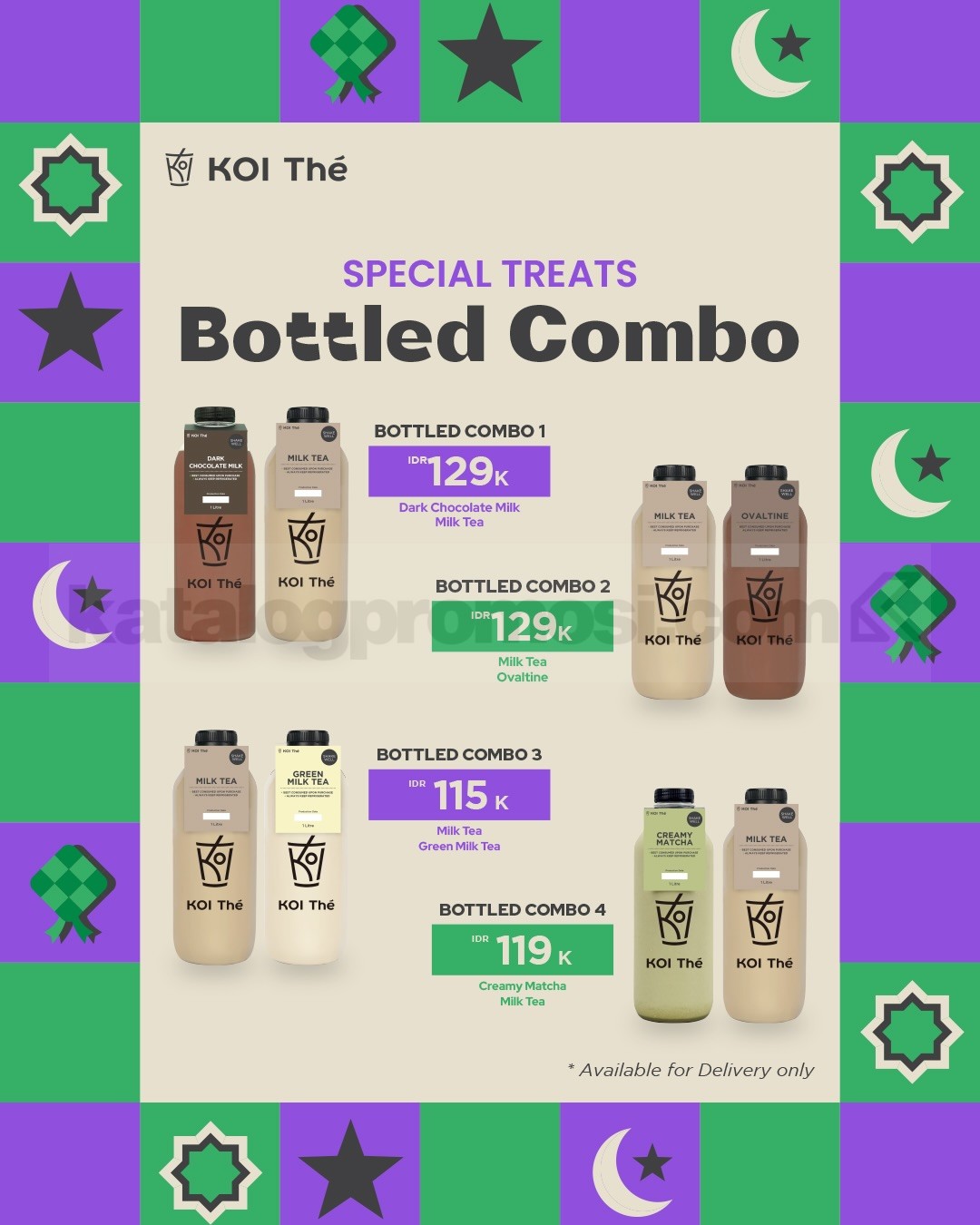 Promo KOI The Spesial Treats Bottled Combo mulai Rp. 115.000 nikmati 4 pilihan paket minuman botol favorit untuk delivery berlaku selama promo berlangsung di seluruh outlet