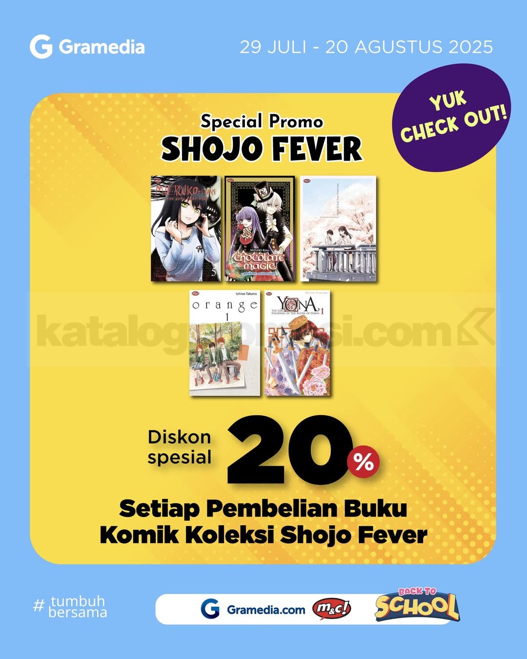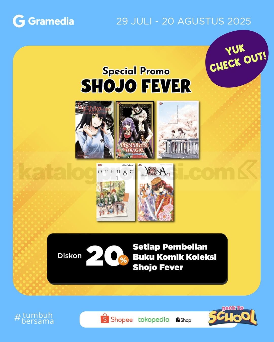 Gak mau nyesel ketinggalan? Langsung checkout sekarang juga di www.gramedia.com atau marketplace. Nikmati Promo Komik Shojo Fever dan borong semua cerita cinta favoritmu sekarang juga! 💌📚