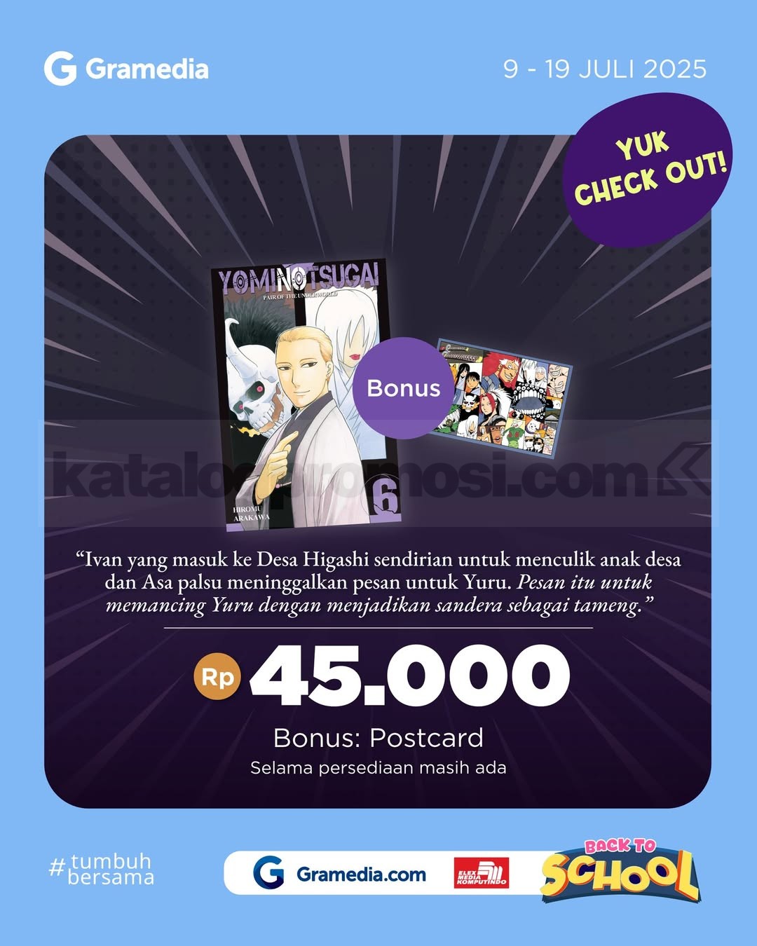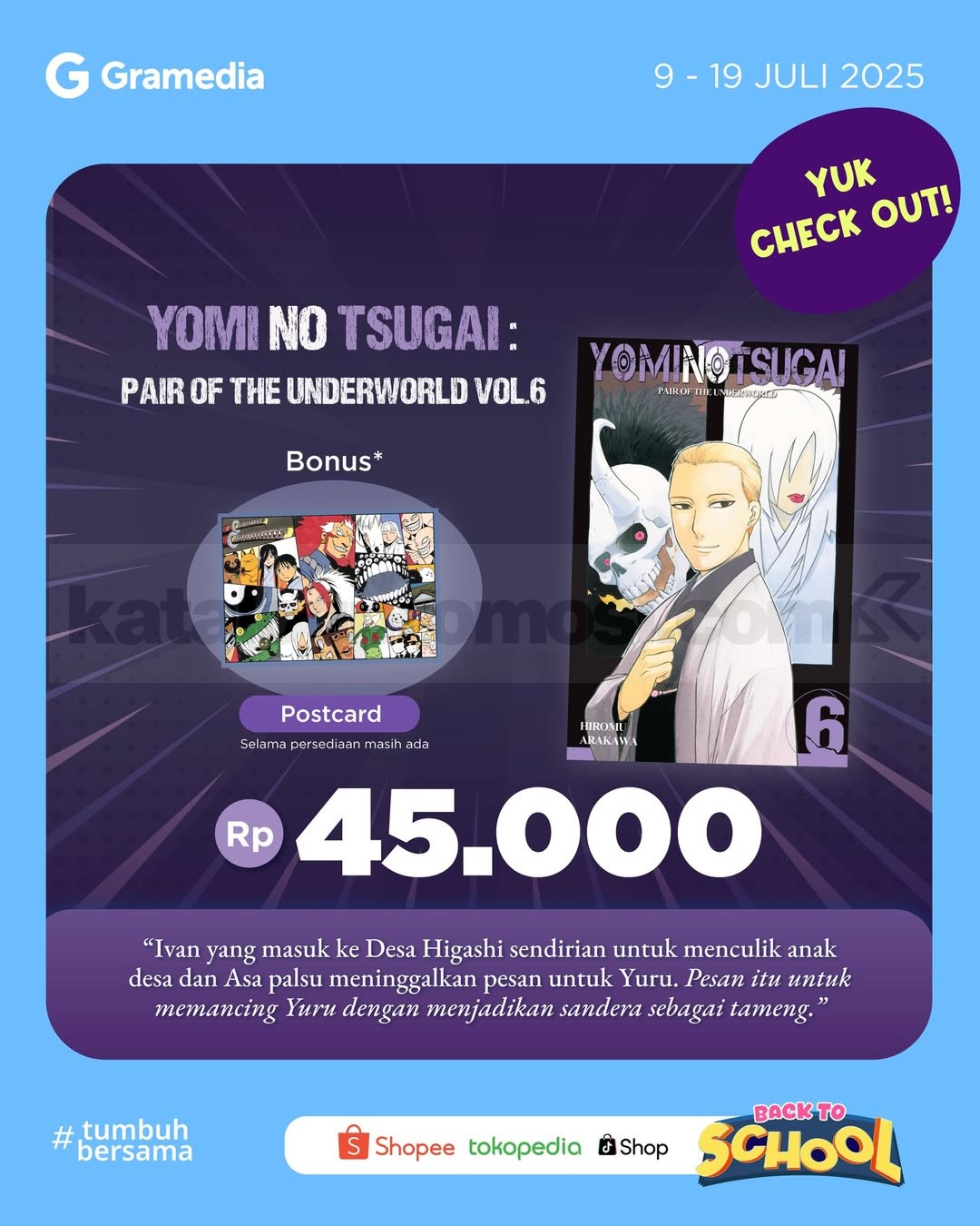 - Dapatkan Bonus Postcard untuk pembelian buku Yomi no Tsugai – Pair of the Underworld 06 (base price Rp45 ribu).