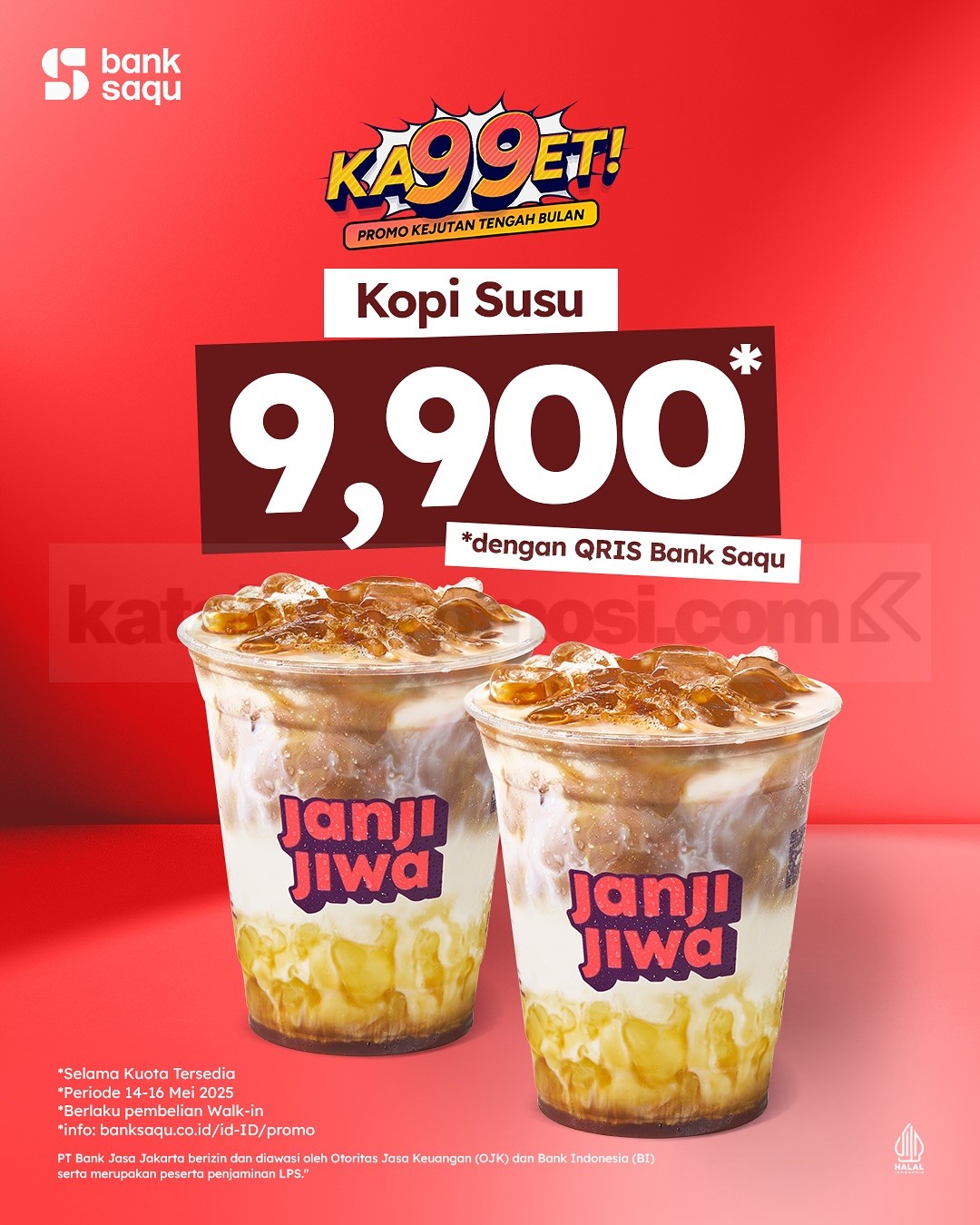 Buruan cobain Promo Ka99et Bank Saqu di Kopi Janji Jiwa sekarang juga! Promo ini cuma berlaku dari 14 sampai 16 Mei 2025, jadi jangan sampe kehabisan kuotanya ya. Cuma dengan QRIS Bank Saqu, kamu bisa ngopi enak di Kopi Janji Jiwa cuma Rp9.900! โ๐ฅ