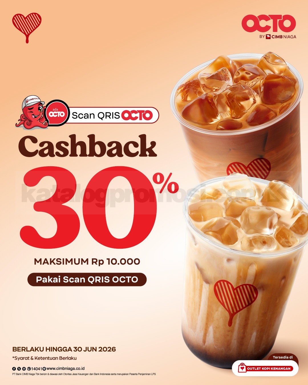 • Cashback 30% hingga Rp. 10.000 dengan Scan QRIS OCTO by CIMB Niaga