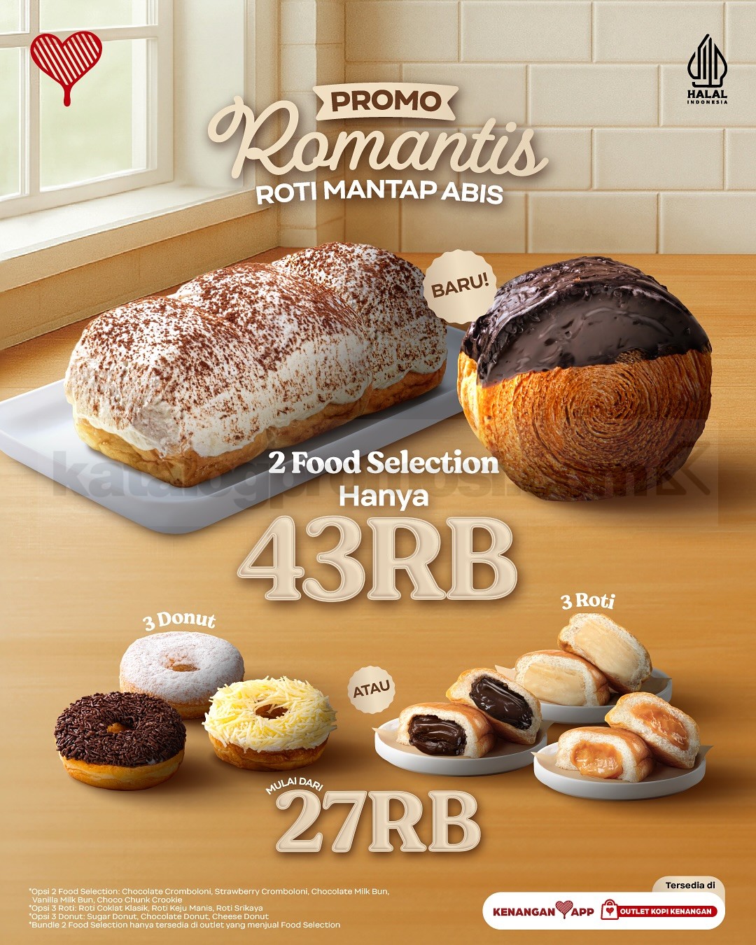 Promo Kopi Kenangan Bundle Romantis mulai Rp.27.000 balik lagi di bulan November! 🫡 Sekarang kamu bisa nikmati 3 roti atau 3 donut dengan kombinasi bebas melalui Kenangan App dan seluruh outlet Kopi Kenangan. Jika ingin pesan online, tersedia juga via GoFood, GrabFood, dan ShopeeFood mulai Rp.37.000.