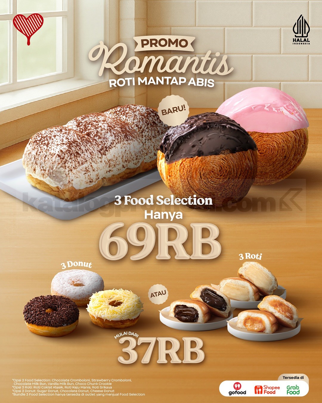 Varian roti dan donut bisa di-mix sesuka hati, cocok banget untuk dinikmati bersama pasangan, teman, atau sebagai treat manis untuk diri sendiri. Promo ini berlaku di aplikasi, langsung di outlet, atau melalui layanan delivery favoritmu, tapi jangan sampai kehabisan karena promo hanya berlaku selama persediaan masih ada! 😍
