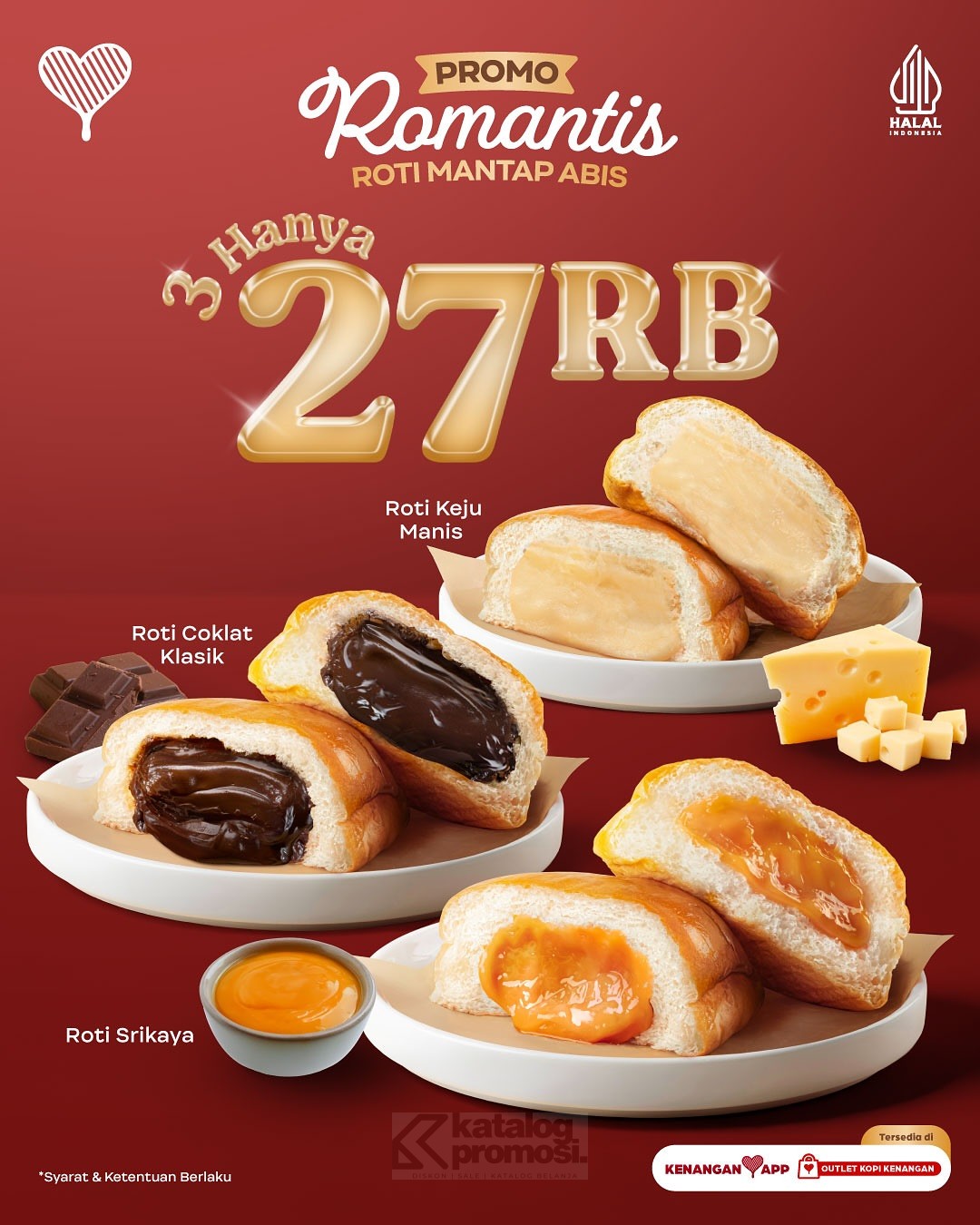 Promo Kopi Kenangan Bundle Romantis mulai Rp.27.000 balik lagi di bulan November! 🫡 Sekarang kamu bisa nikmati 3 roti atau 3 donut dengan kombinasi bebas melalui Kenangan App dan seluruh outlet Kopi Kenangan. Jika ingin pesan online, tersedia juga via GoFood, GrabFood, dan ShopeeFood mulai Rp.37.000.