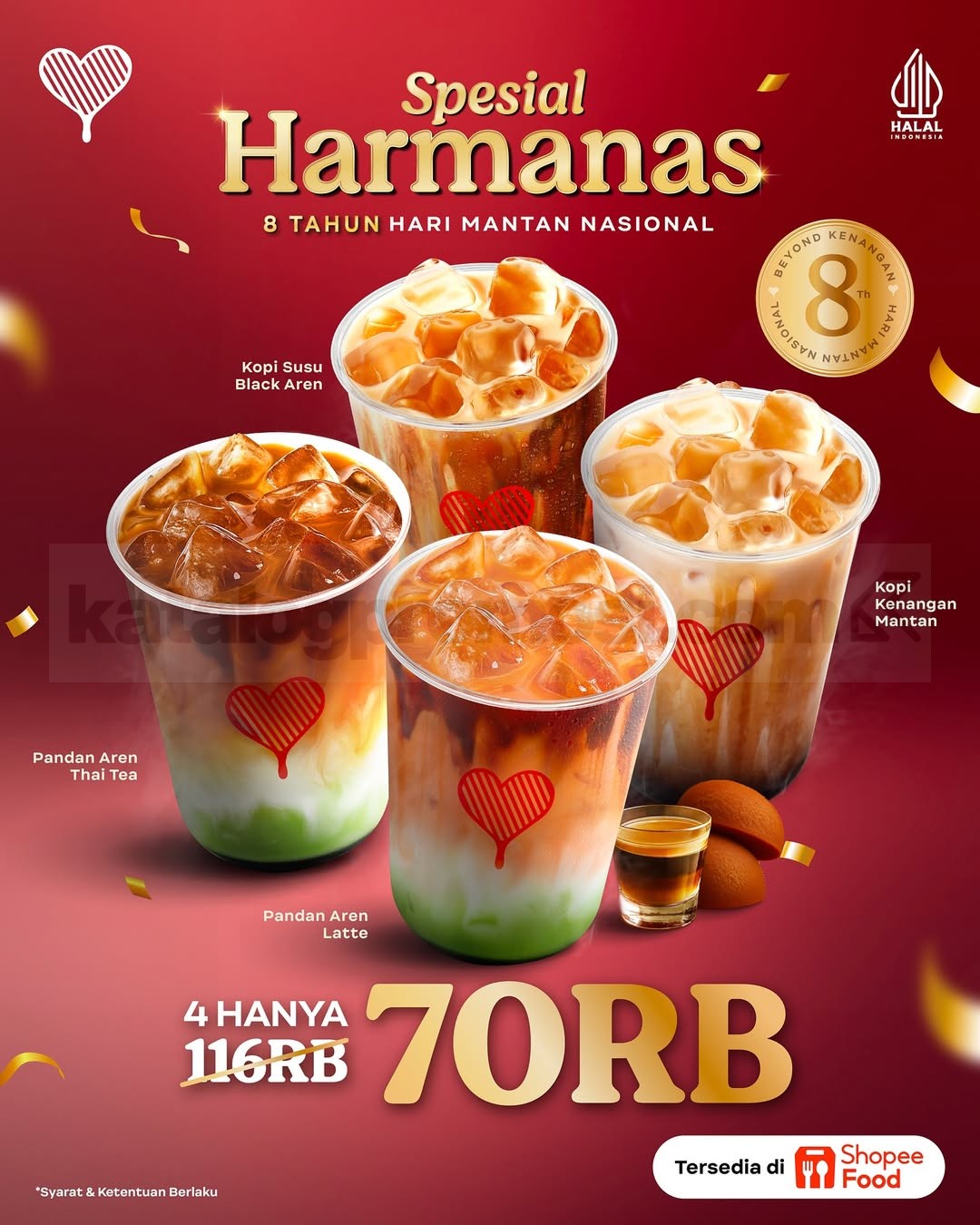 โข ShopeeFood: 4 cup Rp70.000 (harga normal Rp116.000), berlaku 30โ31 Agustus 2025