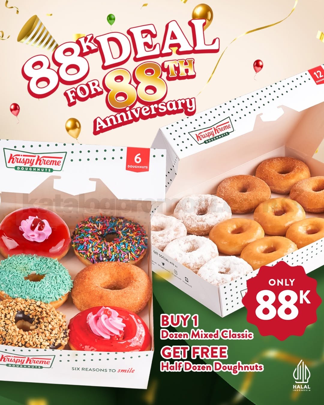 Promo Krispy Kreme Spesial Kemerdekaan hadir buat nemenin momen merdeka kamu biar makin sweet dan penuh semangat! 🇮🇩🍩✨ Khusus periode 16–17 Agustus 2025, kamu bisa dapetin Kopi Susu cuma 17 ribu aja setiap beli 1 lusin donat apa pun di Krispy Kreme! Mulai dari Classic, Basic, Mix sampai Premium – semua bisa ikut Promo Krispy Kreme Spesial Kemerdekaan ini. Berlaku buat delivery maupun dine in di store pilihan seperti Grand Indonesia, Kota Kasablanka, Lippo Mall Puri, AEON Sentul, sampai Flavor Bliss. Kesempatan ini terbatas, jadi jangan mikir lama. Yuk rayain Promo Krispy Kreme Spesial Kemerdekaan dengan bawa pulang donat favorit plus Kopi Susu super hemat! 😍🔥