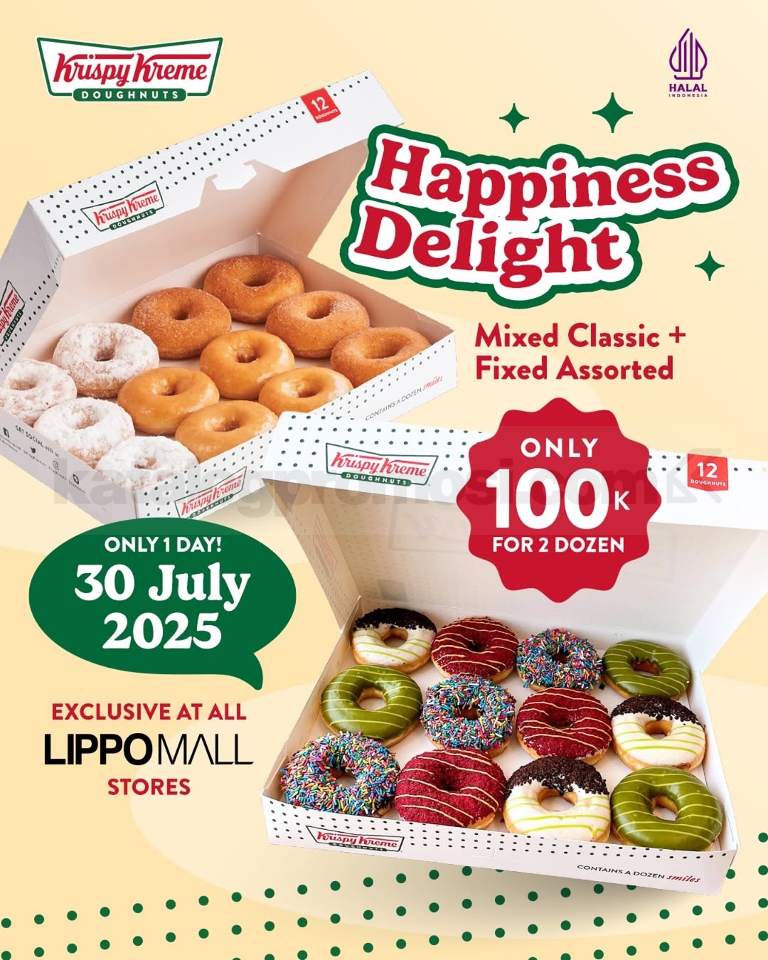 Promo Krispy Kreme Beli 1 Gratis 1 Lusin Donat, nikmati Basic Assorted + Mixed Classic, berlaku 9-11 Desember 2025 di seluruh store.