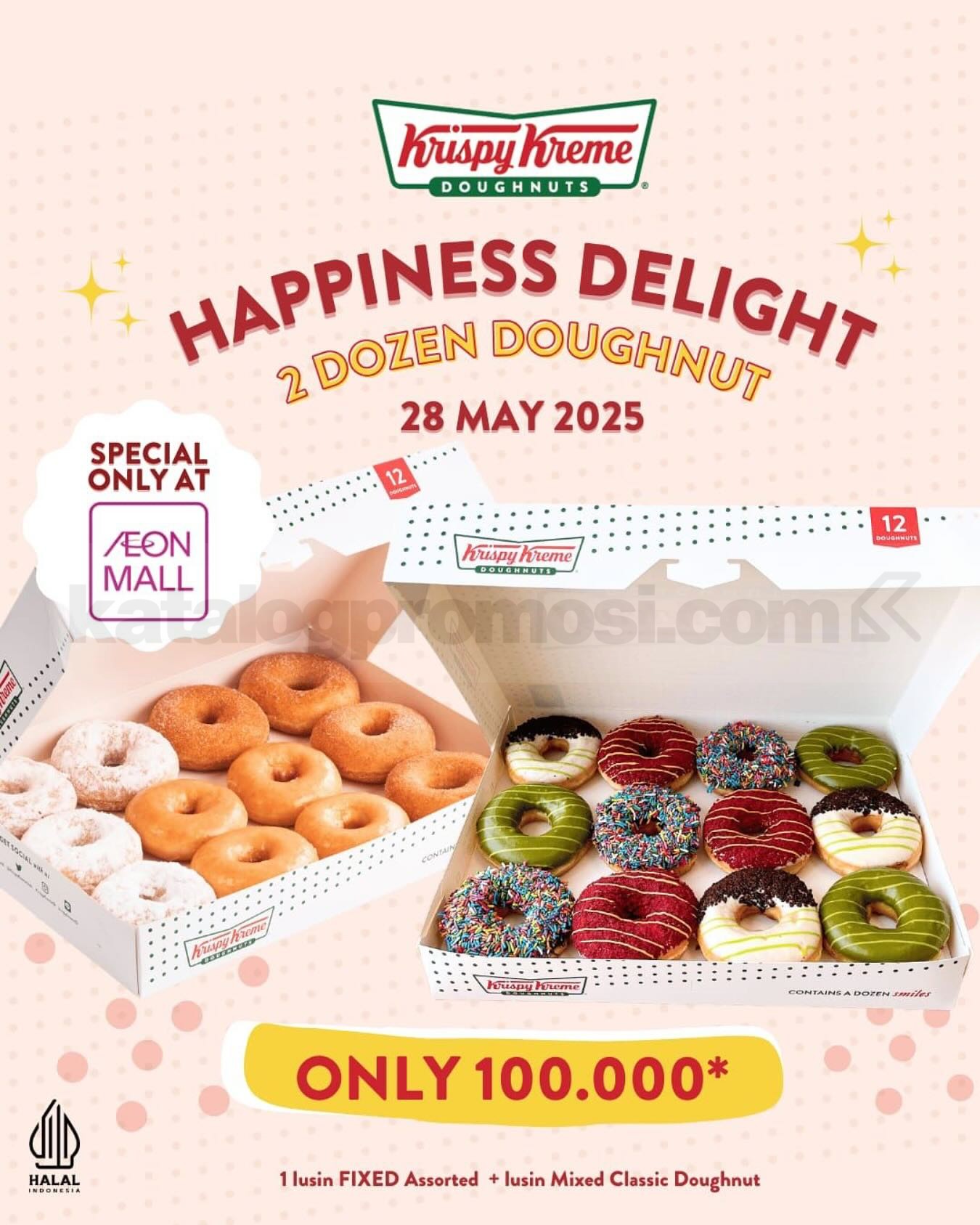 Dengan Promo Krispy Kreme Beli 1 Gratis 1 Lusin Donat, kamu bisa mendapatkan 1 lusin Basic Assorted dan GRATIS 1 lusin Mixed Classic. Kesempatan manis ini cuma berlaku 3 hari, jadi pastikan tidak ketinggalan momen penuh donat lezat! 😍