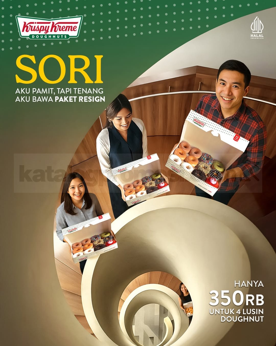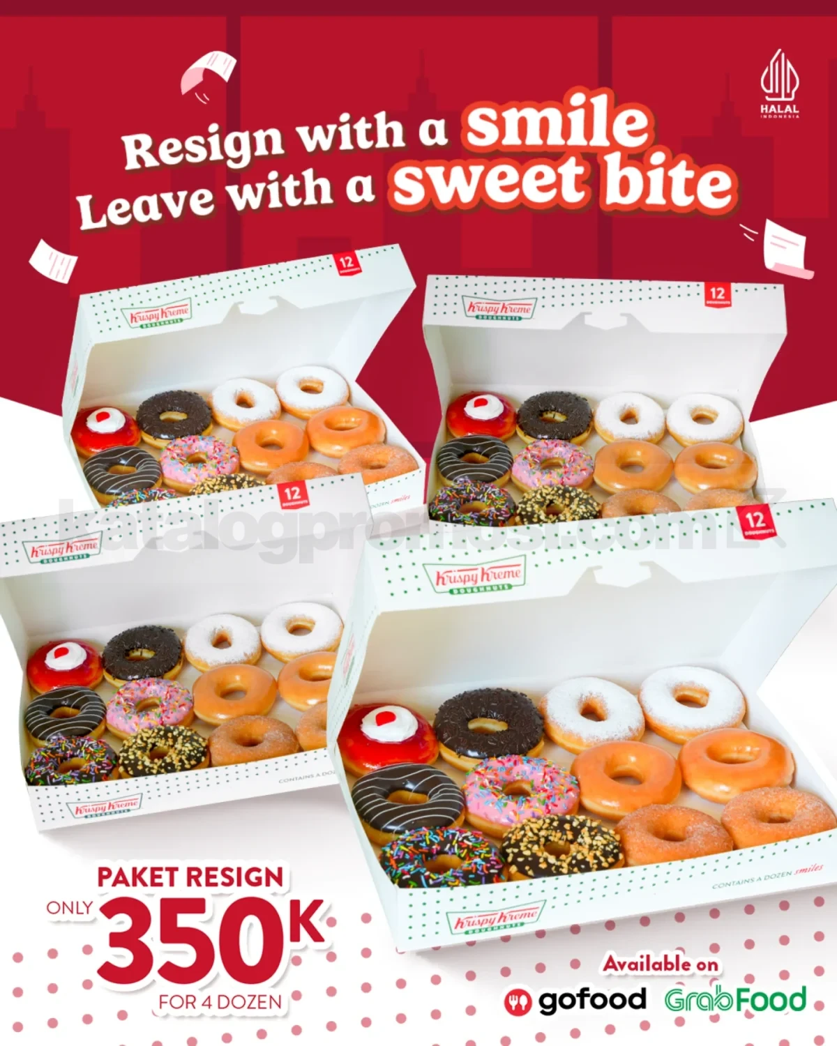 Good vibes only, even saat harus resign! π Saatnya bikin farewell-mu makin seru dan manis dengan Promo Krispy Kreme 4 Lusin Doughnut. Bayangin deh, 4 lusin doughnut Krispy Kreme siap jadi teman setia momen perpisahan kantor atau kumpul bareng teman. Dari yang klasik sampai varian hits, semua siap bikin everyone happy dan suasana farewell lebih fun. π©β¨