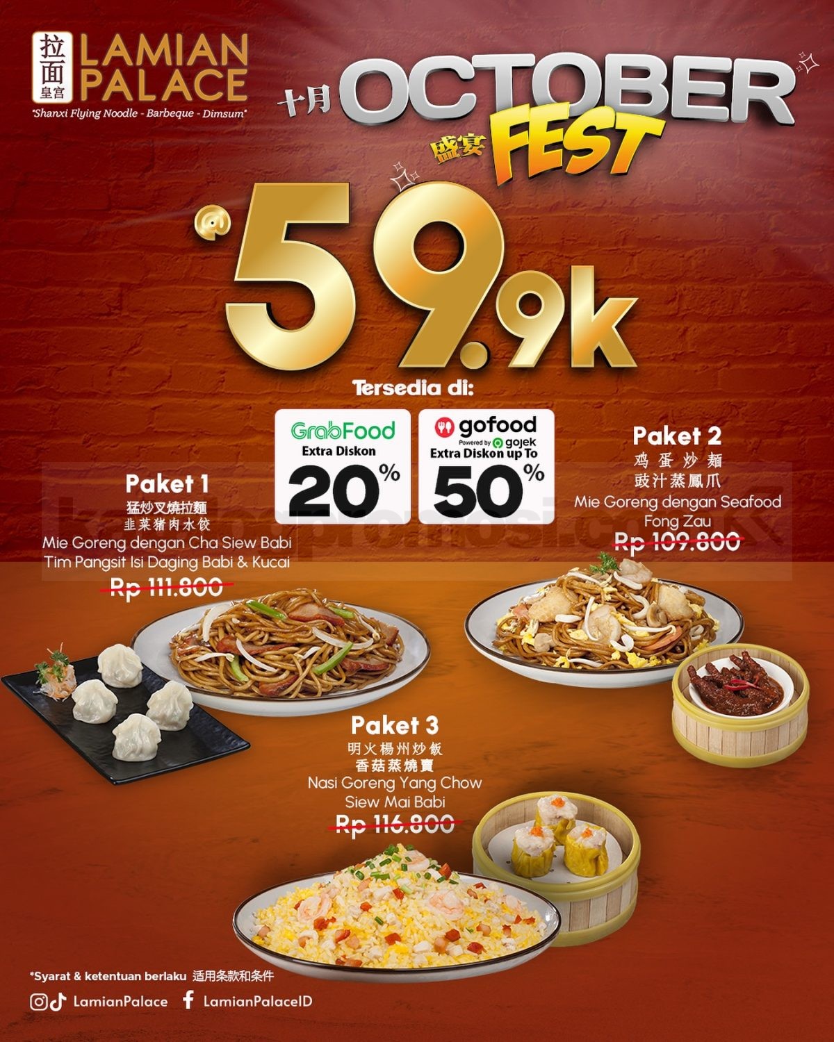 Promo Lamian Palace October Fest Menu Spesial hanya Rp59.900 selama bulan Oktober dengan pemesanan via aplikasi GoFood & GrabFood.