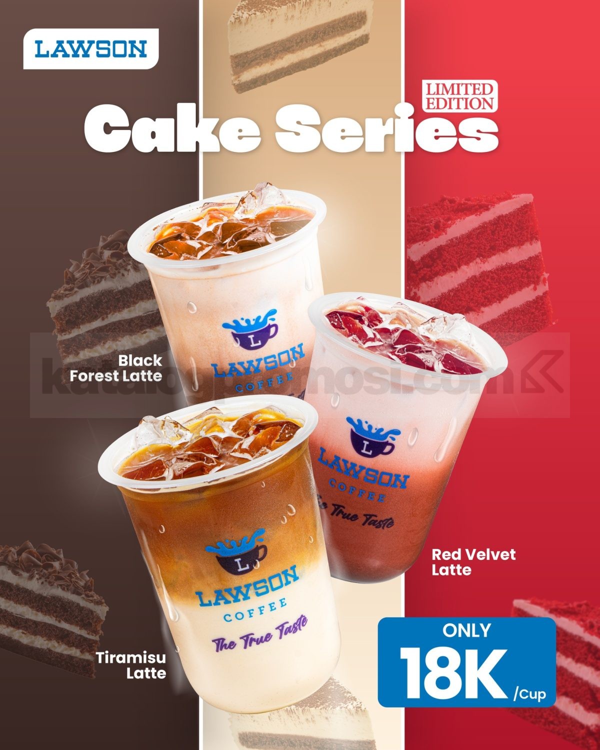 Promo Lawson Cake Series Limited Edition cuma Rp. 18.000 dengan varian Black Forest, Red Velvet, dan Tiramisu, tersedia di Lawson berlaku selama persediaan masih ada.