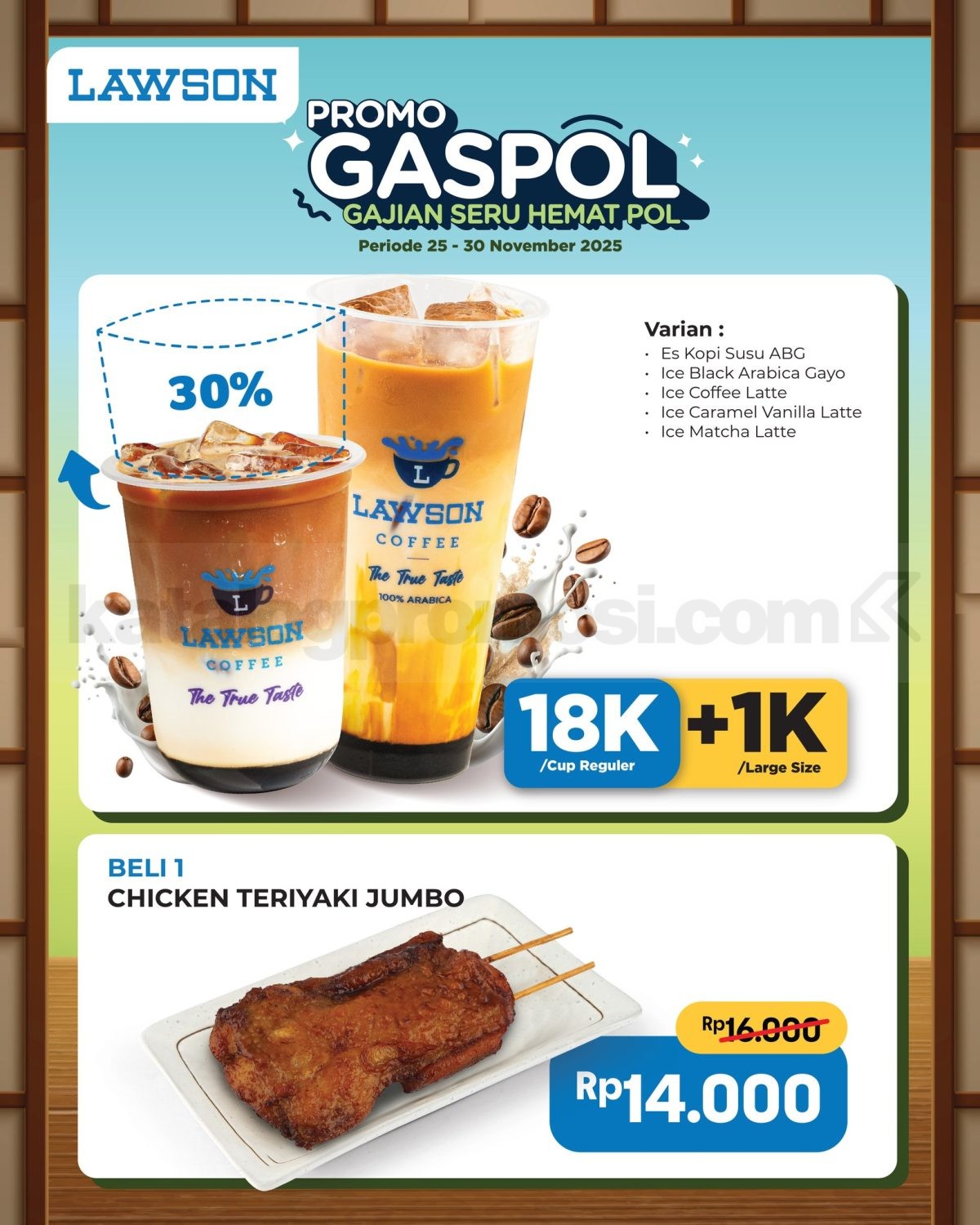 Promo Lawson GASPOL Gajian Murah Pol Chicken Teriyaki Rp. 14 ribu dengan Coffee Large Rp. 19 ribu berlaku mulai tanggal 25 – 30 November 2025 di seluruh outlet.