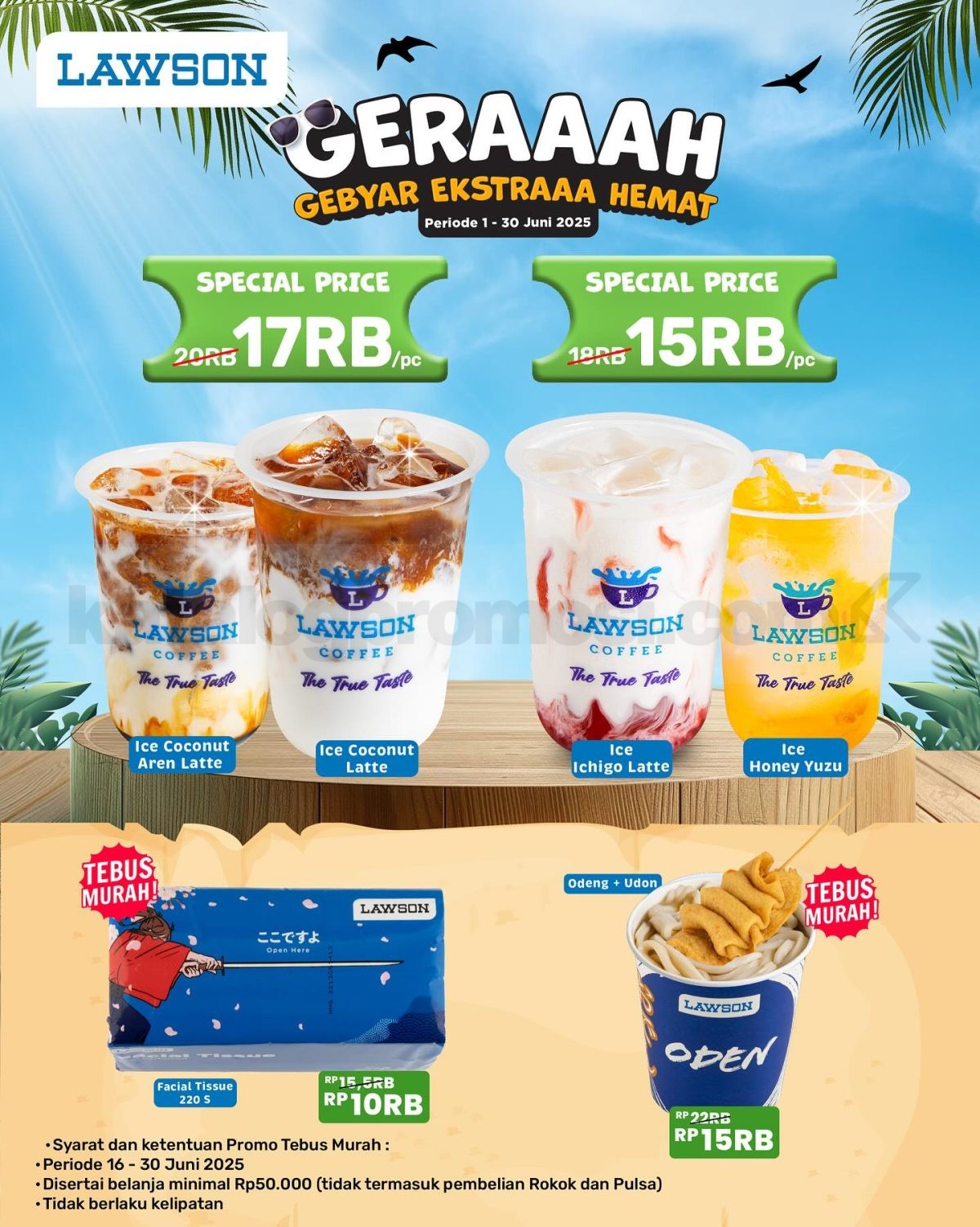 Promo Lawson Gebyar Ekstraaa Hemat Juni 2025 hadir dengan minuman segar mulai 15rb dan tebus murah mulai 10rb. Jangan sampai kelewat!