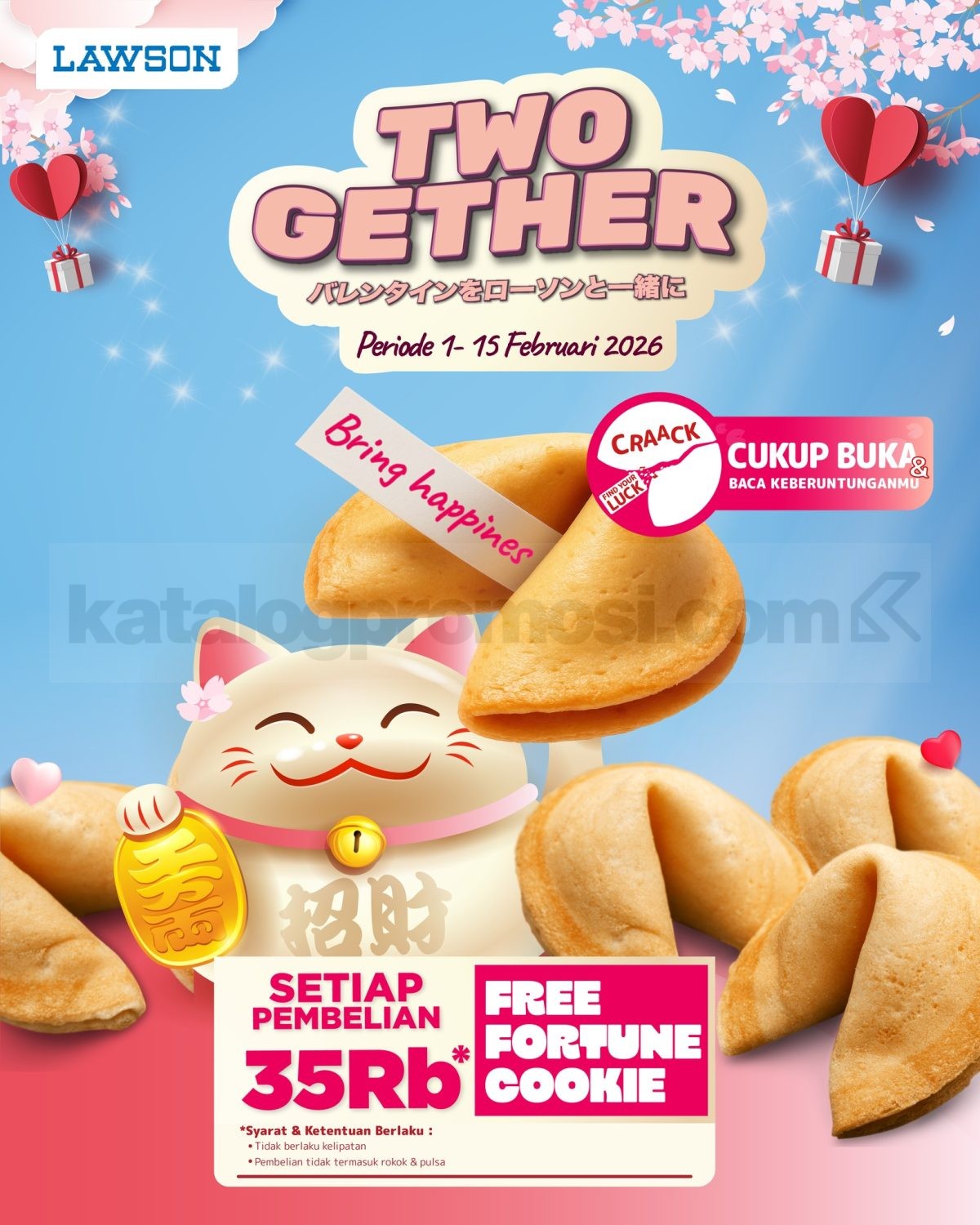 Promo Lawson Gratis Fortune Cookie dengan minimum belanja Rp. 35.000, berlaku mulai tanggal 1 – 15 Februari 2026 di seluruh Lawson.