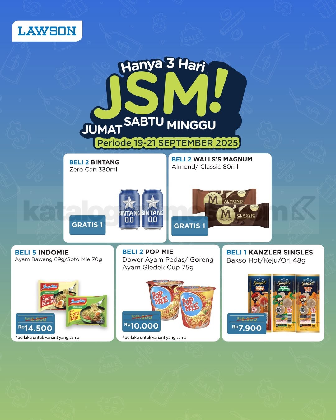 Promo Lawson JSM berlaku 19-21 September 2025 di semua store (kecuali lokasi tertentu) untuk semua jenis pembayaran.