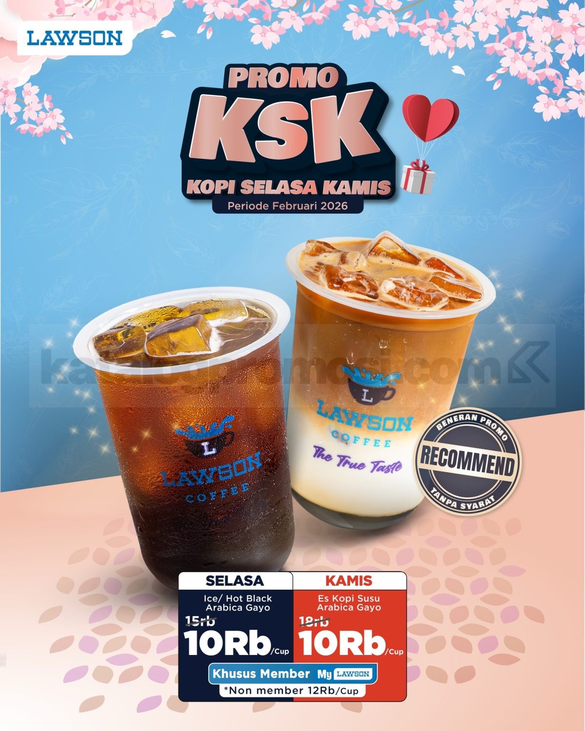 Promo Lawson KSK Kopi Selasa Kamis adalah program promo minuman kopi Arabica Gayo dengan harga spesial di hari Selasa dan Kamis selama Februari 2026.