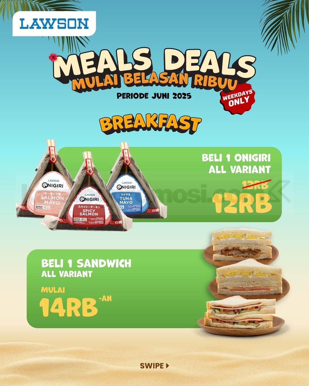 Promo Lawson Meal Deals hadirkan menu sarapan, makan siang, dan snack mulai Rp12.000! Berlaku weekday Senin–Jumat selama Juni 2025!