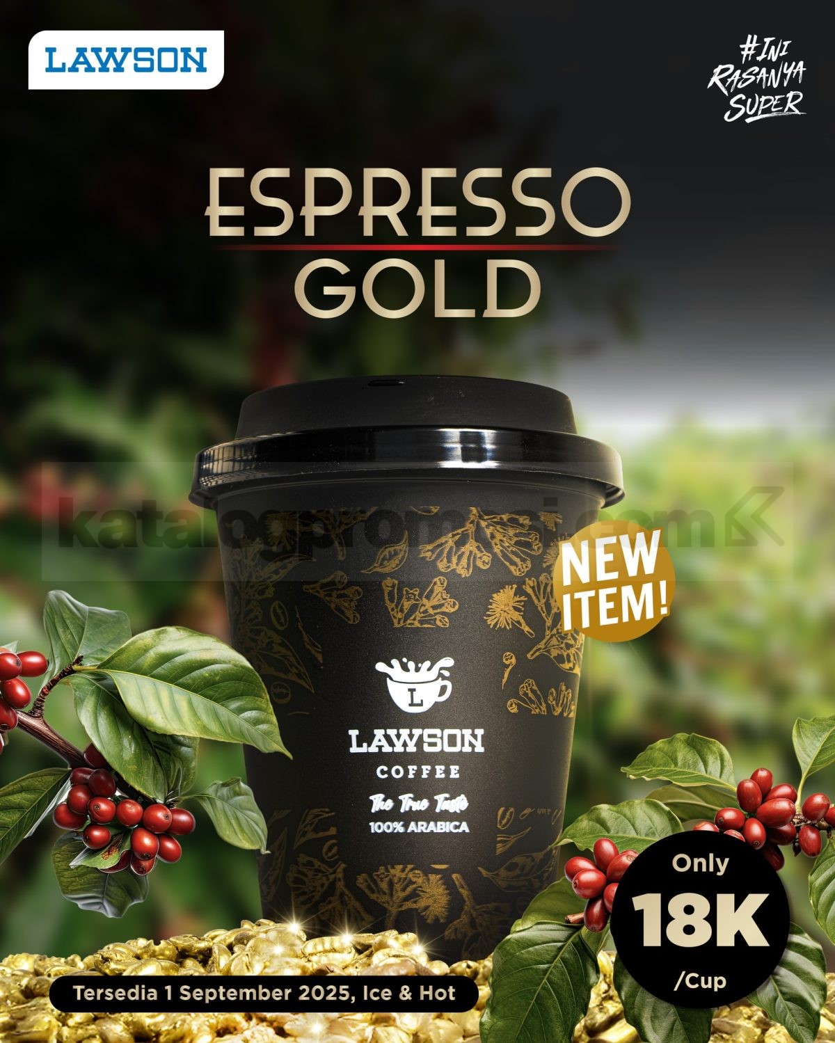 New Item! โ Promo Lawson NEW! Espresso Gold cuma Rp18K siap jadi teman ngopi kamu dengan cita rasa premium dari biji kopi 100% Arabica pilihan.