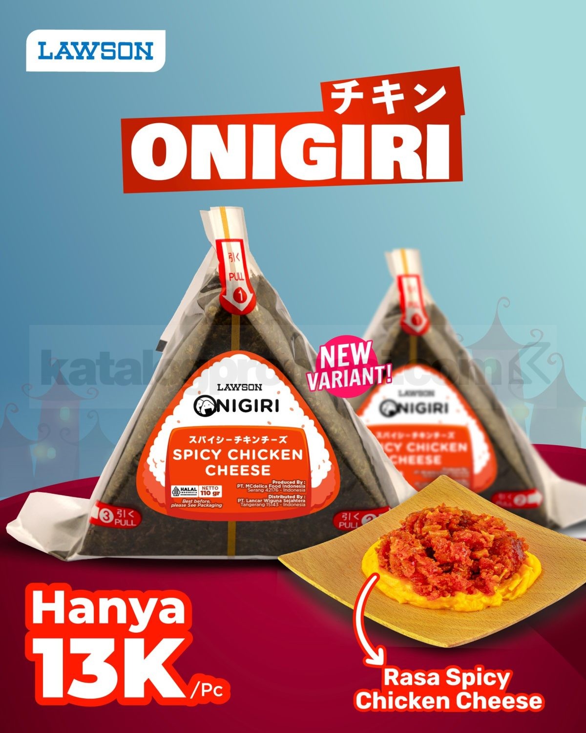 Promo LAWSON Onigiri Spicy Chicken Cheese Rp. 13.000 berlaku selama produk tersedia, varian baru onigiri dengan rasa spicy chicken cheese di Lawson terdekat.