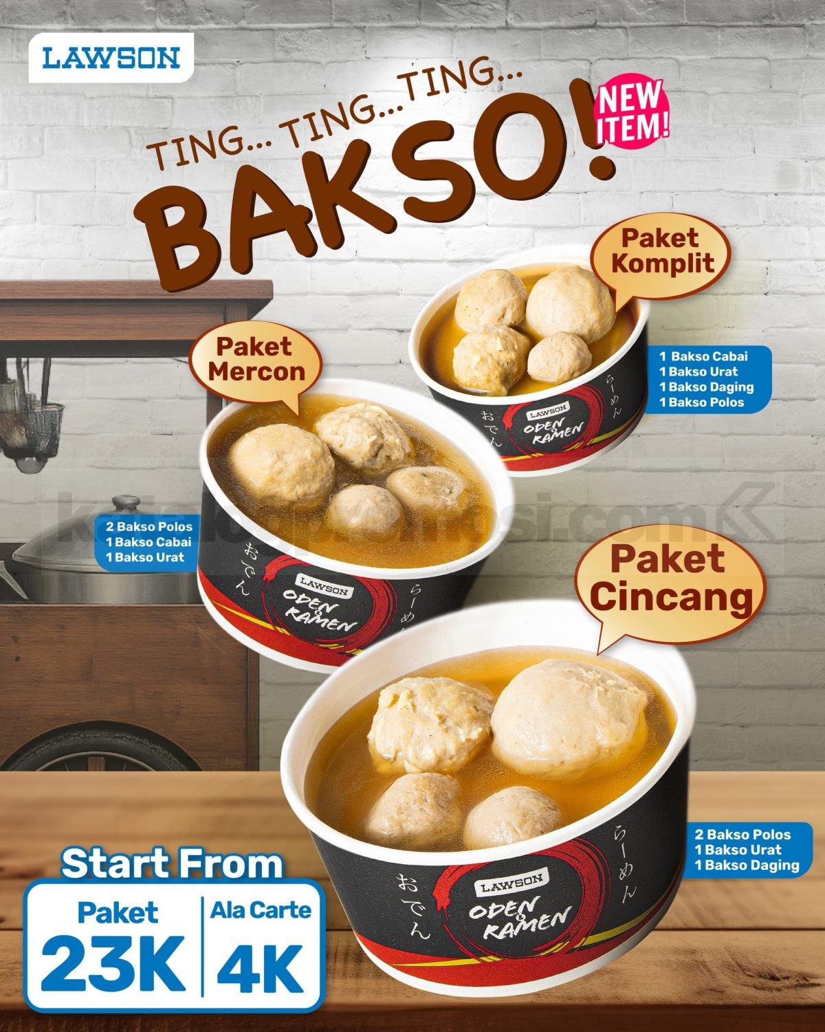Nikmati hangatnya Promo Lawson Paket Bakso Komplit, Mercon Atau Cincang mulai Rp. 23.000 sebagai pilihan makan praktis favorit di segala cuaca.