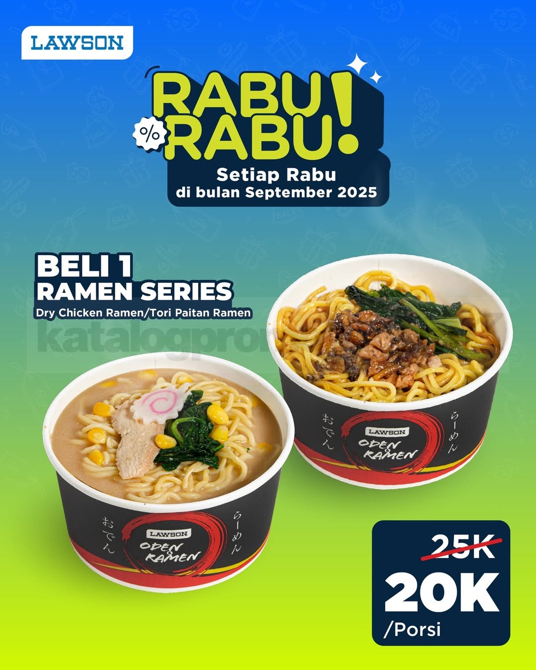 Jangan sampai lupa, Promo Lawson Rabu Rabu cuma ada setiap hari Rabu selama September 2025! Jadi pastikan kamu mampir ke Lawson terdekat dan nikmatin ramen favorit kamu cuma 20 ribuan! Yuk rame-rame serbu Lawson hari Rabu ini! ๐๐ฅ