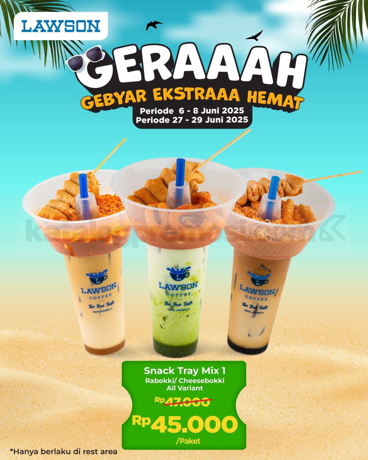 Promo Lawson Rest Area Snack Tray Mix Rp45.000, berlaku 6–8 Juni dan 27–29 Juni 2025 di semua outlet rest area