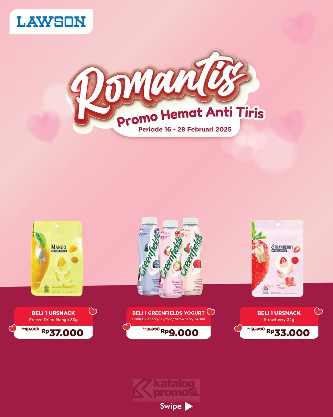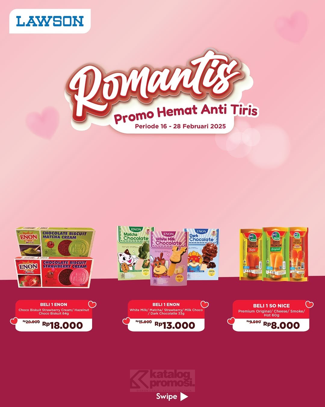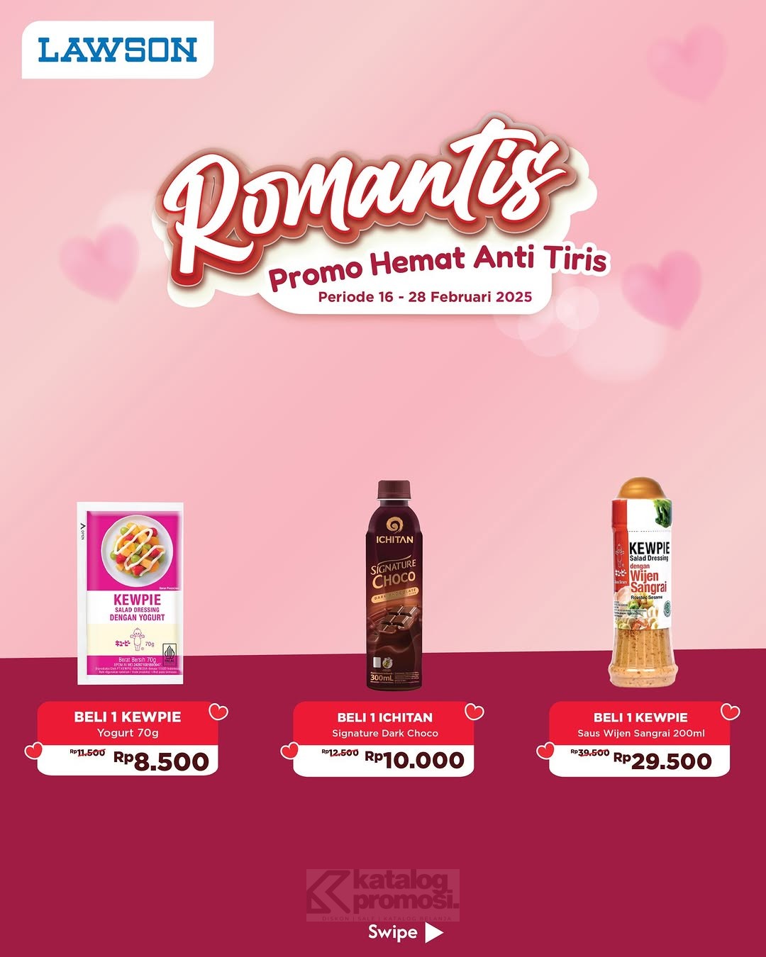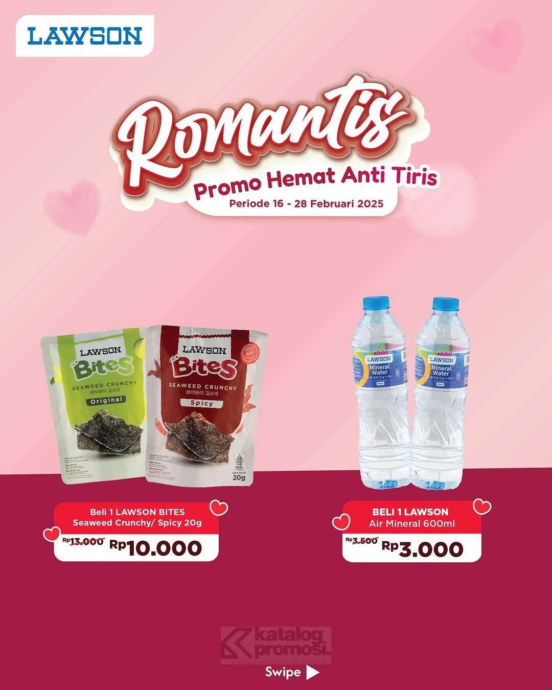 Bulan Februari makin romantis dengan promo spesial di Lawson! Ada banyak produk pilihan dengan harga hemat, dijamin bikin belanja makin seru!