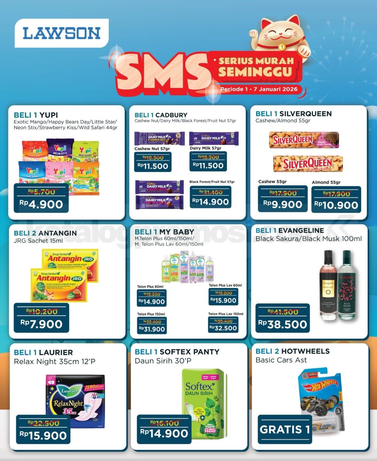 👉 Cek gambar Promo Lawson SMS Serius Murah Seminggu 01-07 Januari 2026 di bawah ini untuk lihat rangkuman produk dan harga hematnya.