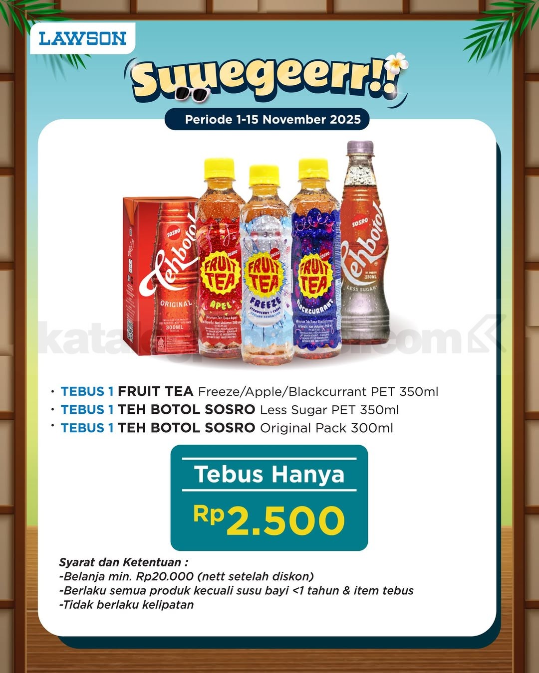 Promo Lawson Suuegeerr tebus minuman Rp. 2.500 untuk belanja Rp. 20.000, berlaku 1-15 November 2025 di seluruh Lawson.