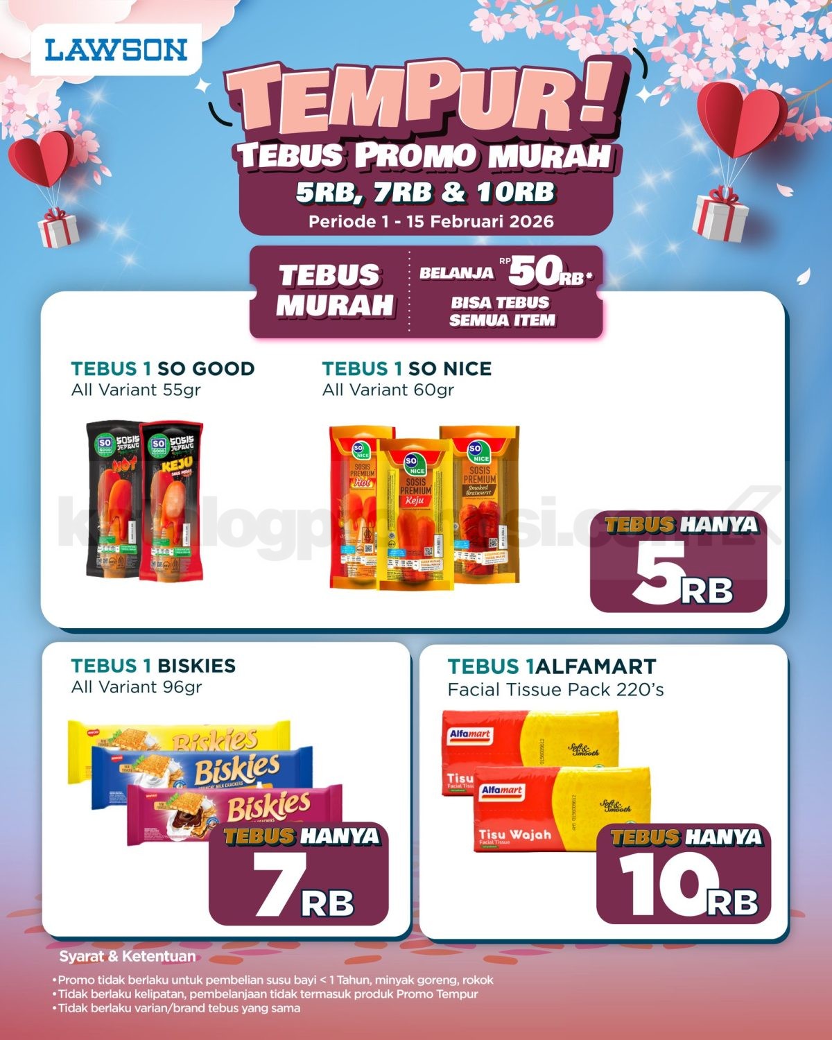 Promo Lawson Tempur Tebus Murah mulai Rp.5.000 dengan belanja Rp. 50.000, pilihan produk harian harga tebus hemat berlaku 1–15 Februari 2026 di seluruh outlet Lawson kecuali lokasi tertentu.