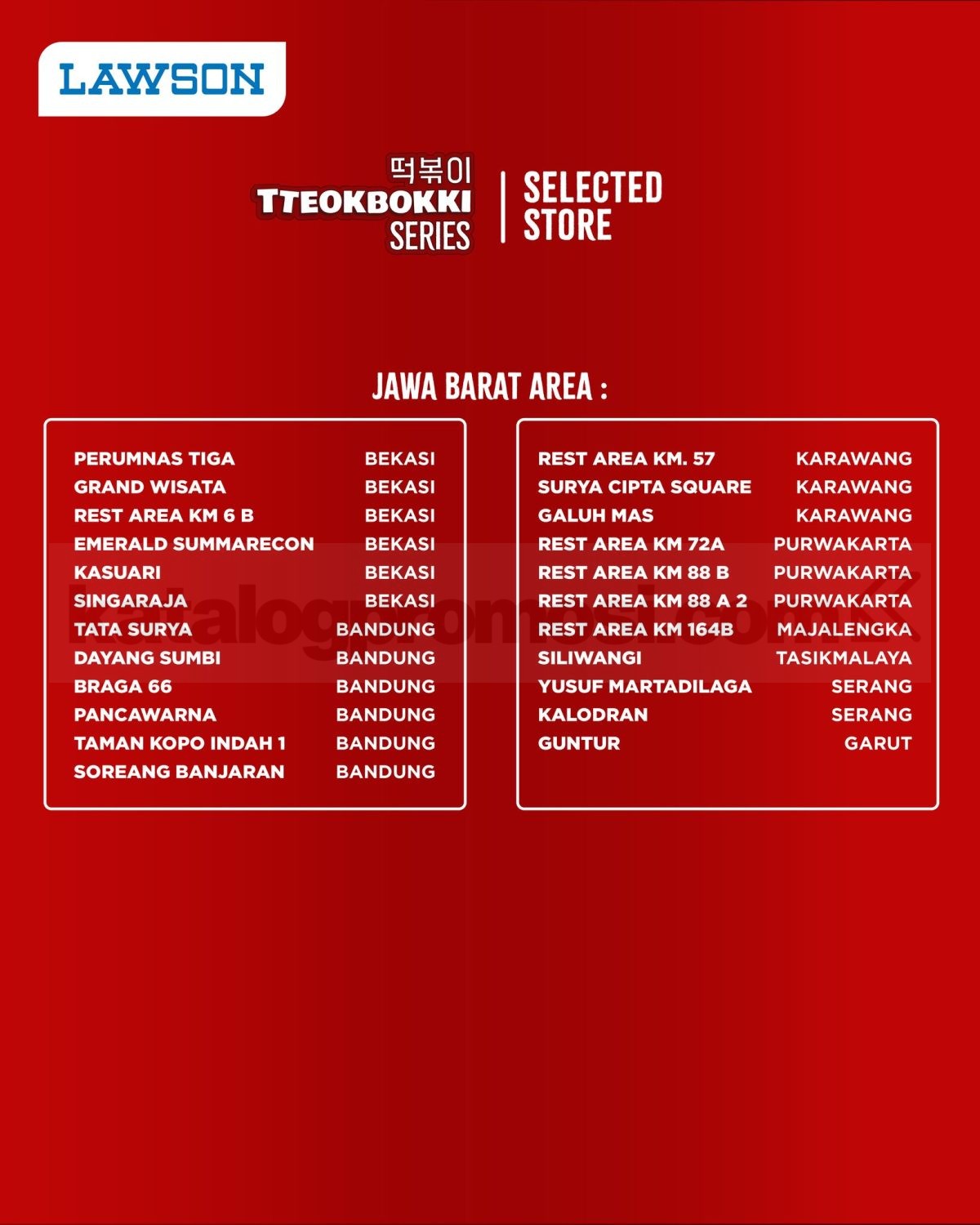 Pembelian dilakukan langsung di outlet Lawson yang menyediakan menu Tteokbokki Series selama stok menu masih tersedia di masing-masing lokasi.