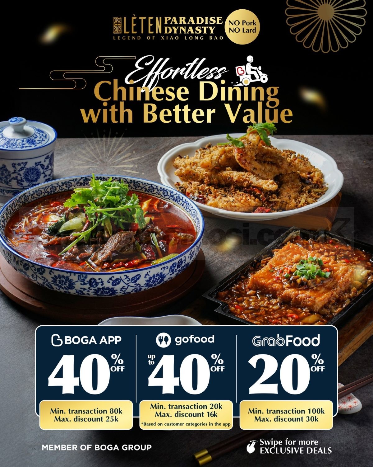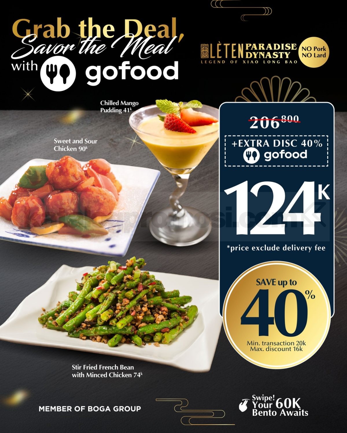 π Cek gambar Promo Leten Paradise Dynasty Delivery Diskon hingga 40% di bawah ini untuk lihat detail menu dan penawaran lengkapnya