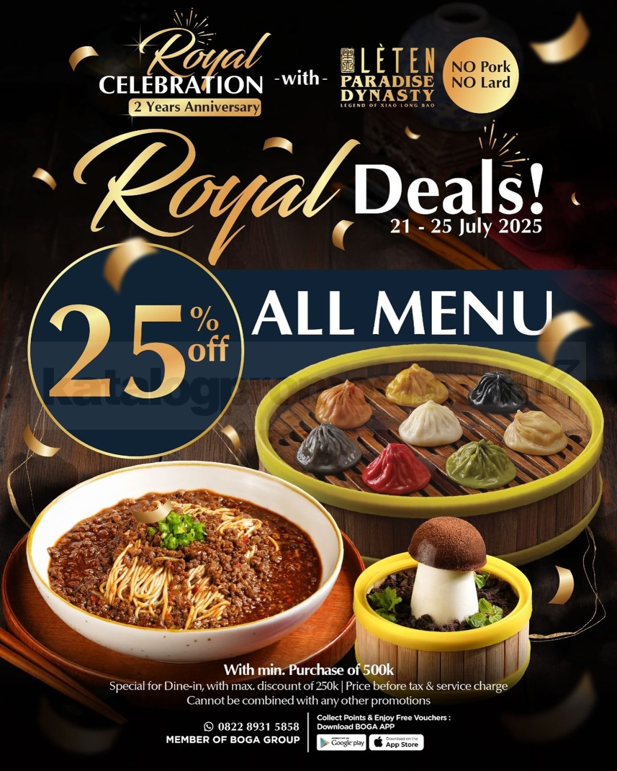 Promo LETEN Paradise Dynasty Personal Value Set Delivery Rp60.000 hemat hingga 65% tersedia di GrabFood, GoFood, dan Boga App sepanjang September 2025.