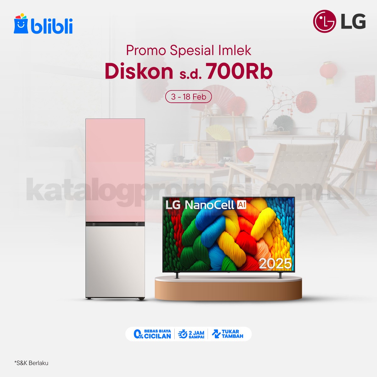Promo LG Spesial Imlek diskon hingga Rp. 700.000, nikmati cicilan 0%, 2 Jam Sampai & Tukar Tambah, berlaku mulai 3 Februari – 18 Februari 2026.