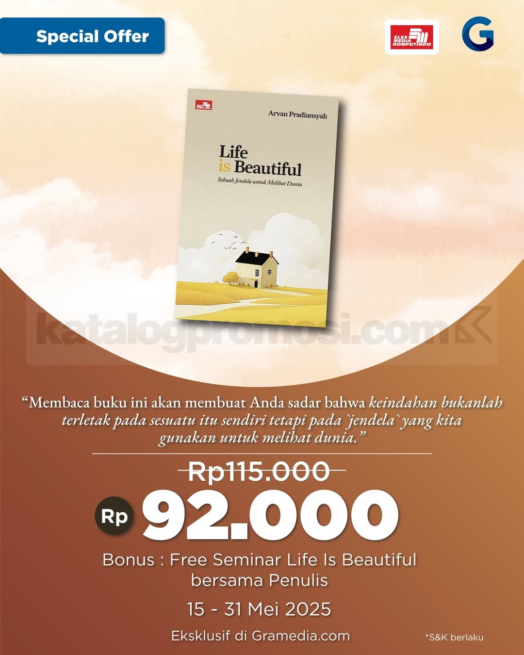Di promo Gramedia, kamu bisa dapetin buku ini cuma Rp92 ribu plus bonus seminar eksklusif bareng penulisnya langsung! πβ¨