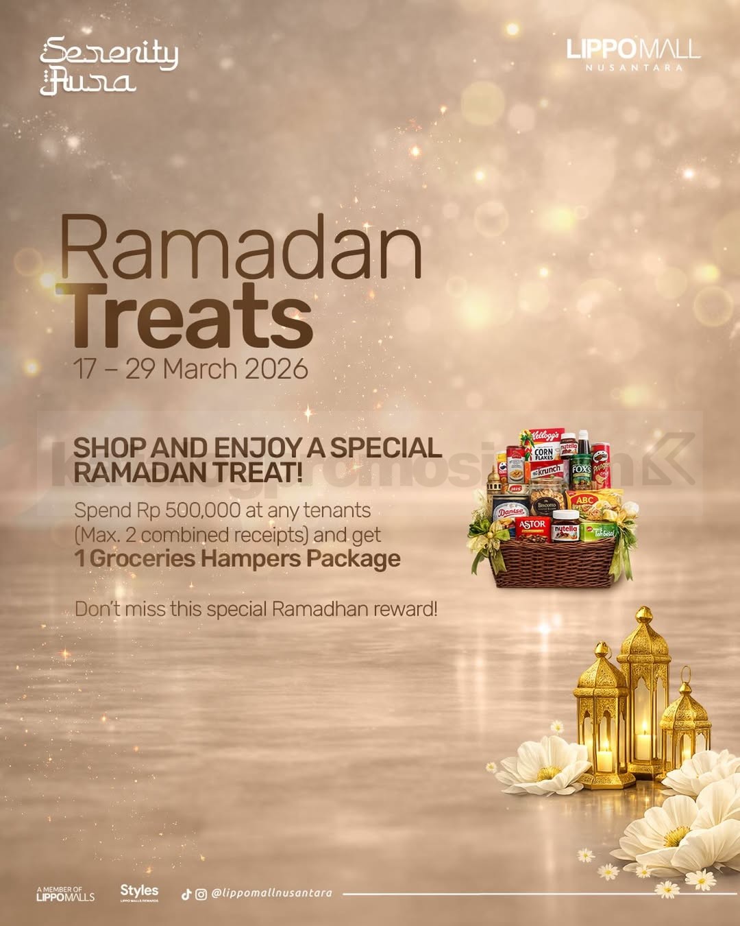 Nikmati momen Ramadan lebih spesial dengan Ramadan Treats dari Lippo Mall Nusantara! 🛍️ Belanja minimal Rp. 500.000 di tenant mana pun (maksimal 2 struk gabungan) dan dapatkan 1 paket hampers gratis. Promo ini memberi kesempatan sempurna untuk menambah kebahagiaan Ramadan sambil menikmati pengalaman belanja yang lebih berkesan.