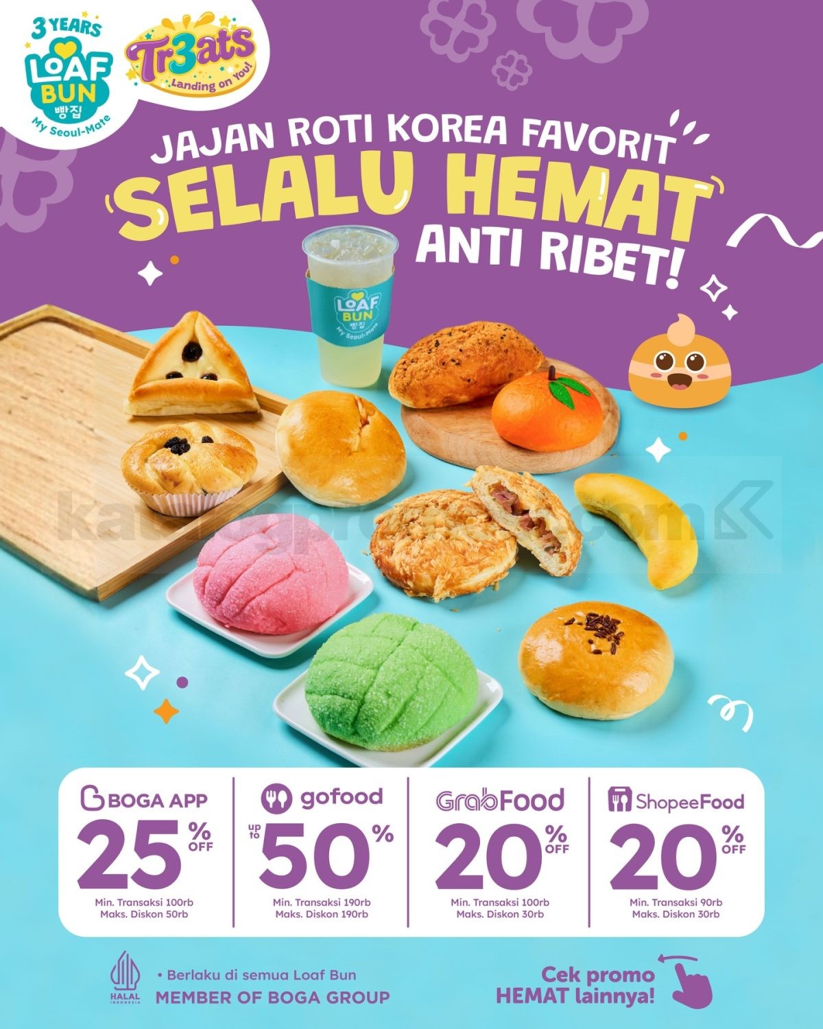 Promo Loaf Bun Delivery Diskon hingga 50% nikmati potongan harga via aplikasi delivery berlaku selama periode promo berlangsung di seluruh outlet.