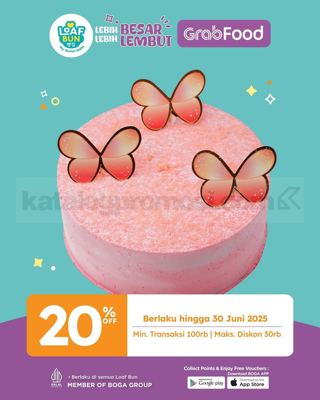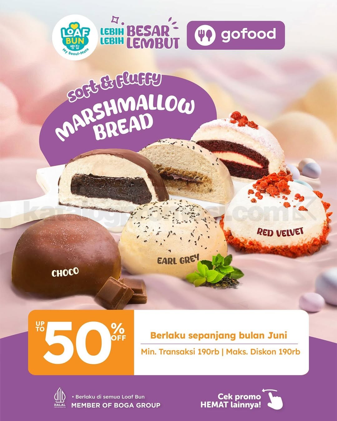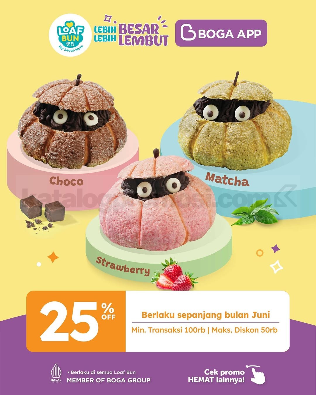 Promo berlaku di seluruh outlet Loaf Bun yang tersedia di platform Boga App, GoFood, GrabFood, dan ShopeeFood.