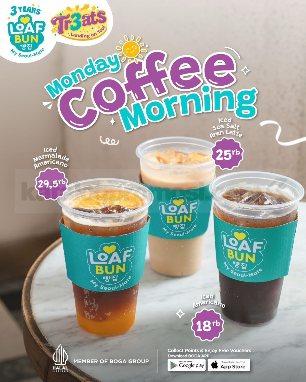 👉 Cek gambar Promo Loaf Bun Monday Coffee Morning mulai Rp. 18 ribu di bawah ini untuk lihat detail menu dan pilihan kopinya!