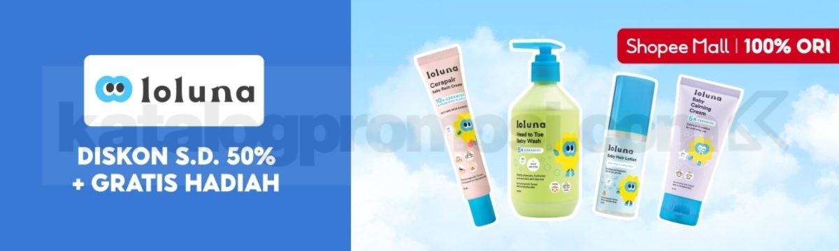 Promo Loluna Shopee Diskon 50% produk bayi dengan hadiah menarik, perawatan skin barrier si kecil berlaku 22 April 2026 – 30 April 2026.