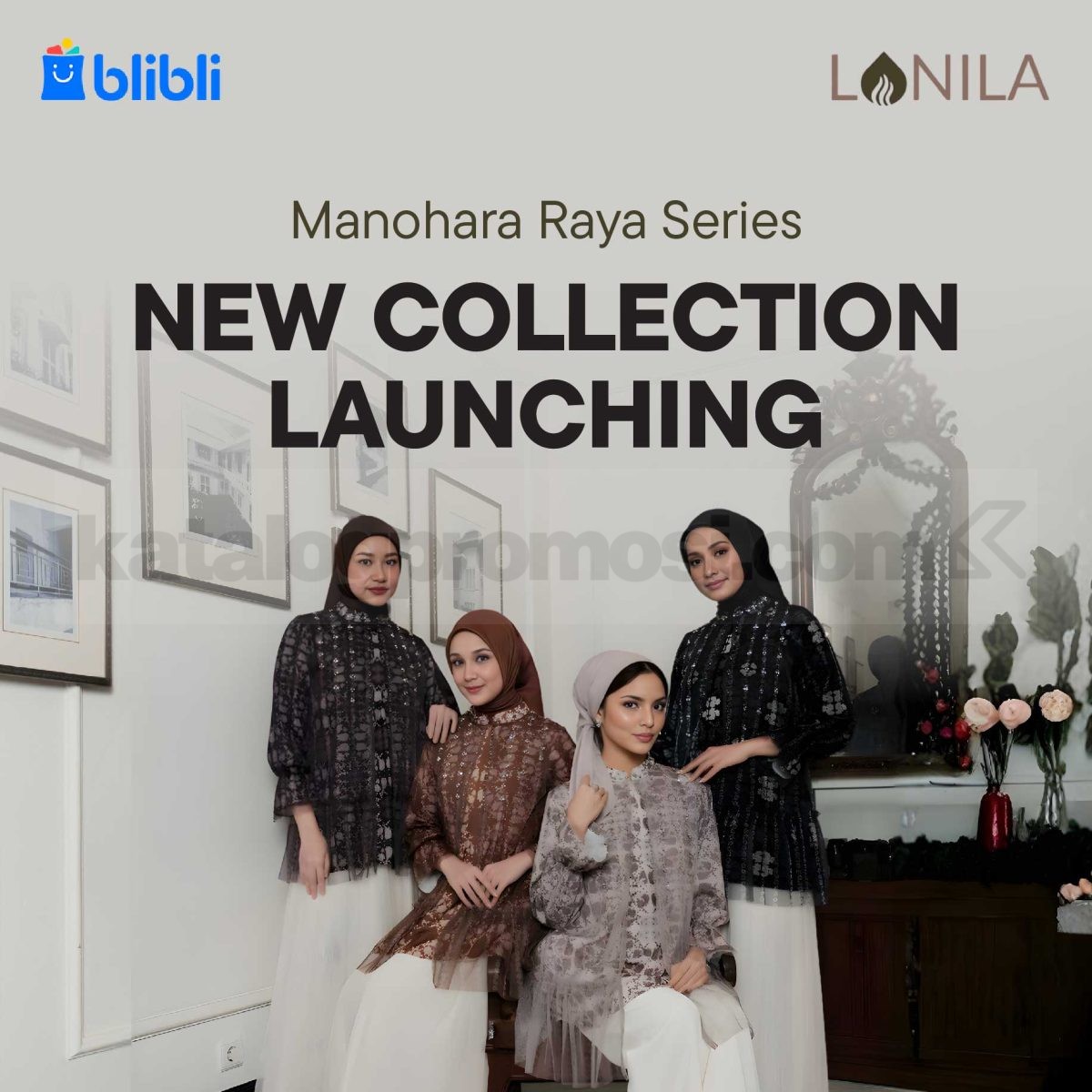 Promo Lonila Raya Manohara Signature Blouse Rp. 415.000 dengan detail payet mewah untuk momen spesial, tersedia eksklusif via aplikasi Blibli, berlaku mulai tanggal 20 Januari 2026 – 31 Januari 2026.