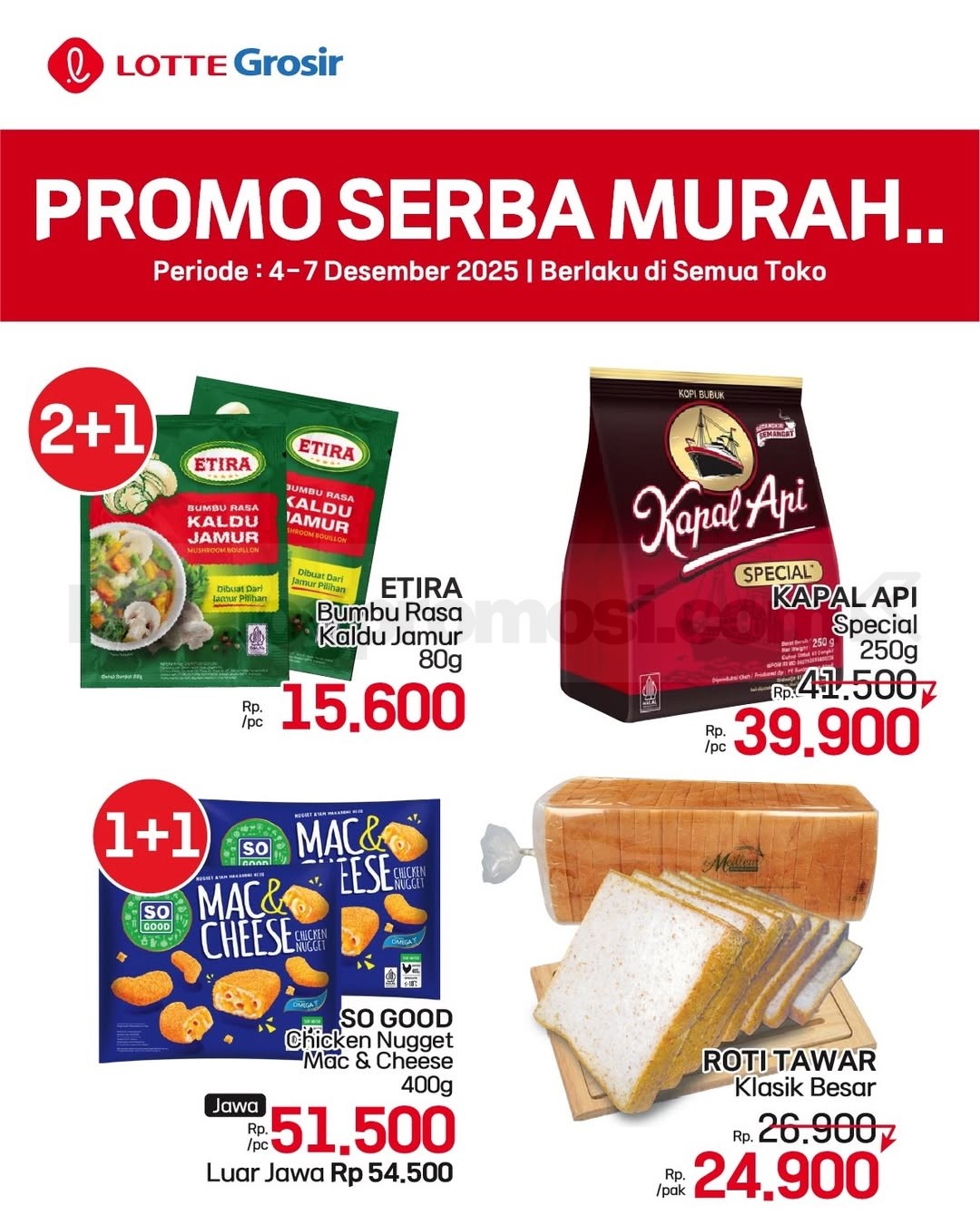 Untuk kamu yang lagi cari kebutuhan usaha hingga kebutuhan sehari-hari, buruan datang ke LOTTE Grosir sekarang juga karena Promo ini hanya berlaku 04-07 DESEMBER 2025 saja lho.. Yuk, belanja di LOTTE Grosir!