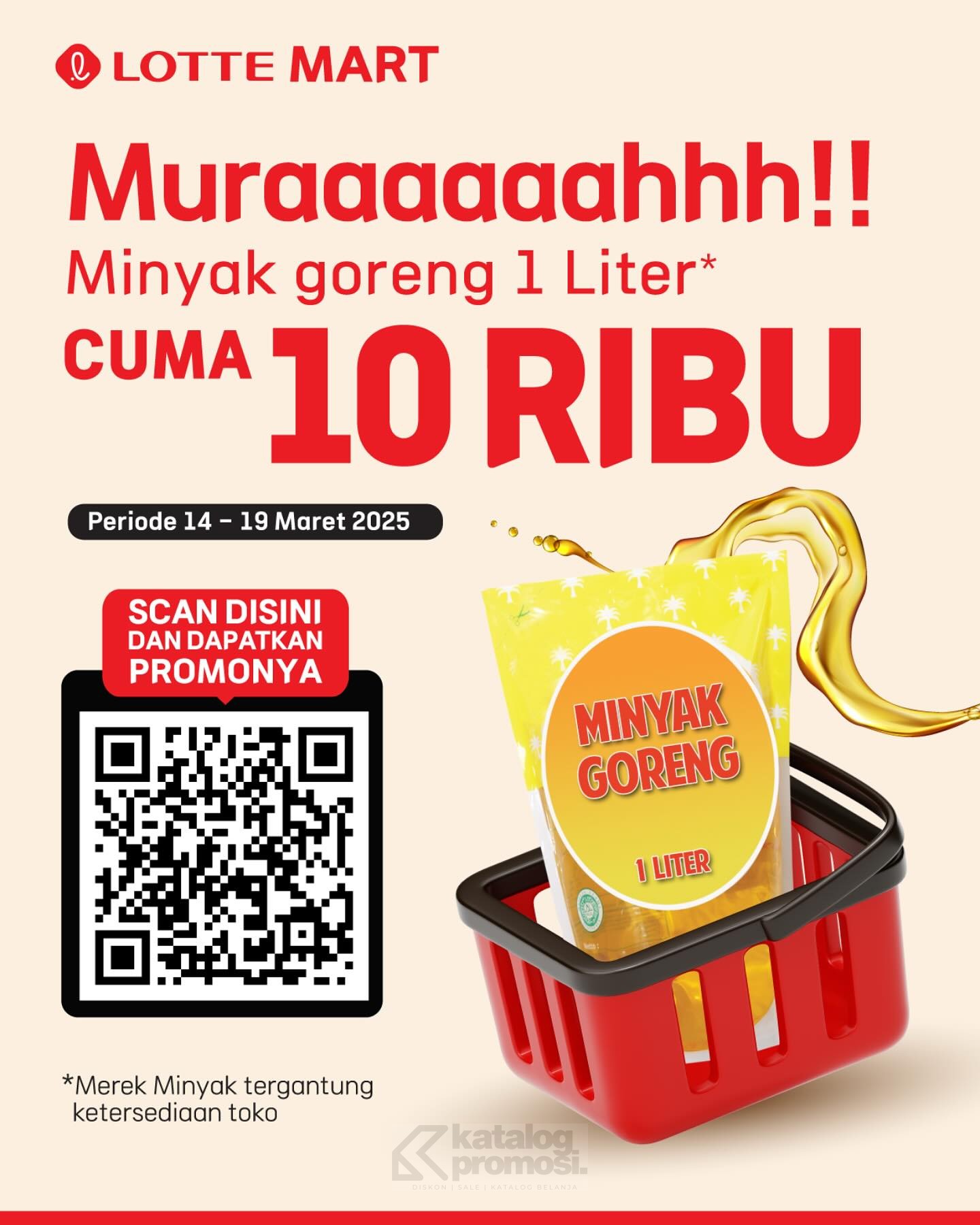 Promo minyak goreng di LOTTE Mart! BIMOLI 1 liter cuma Rp. 10 RIBU khusus member. Berlaku 14-19 Maret 2025! Scan QR sekarang!