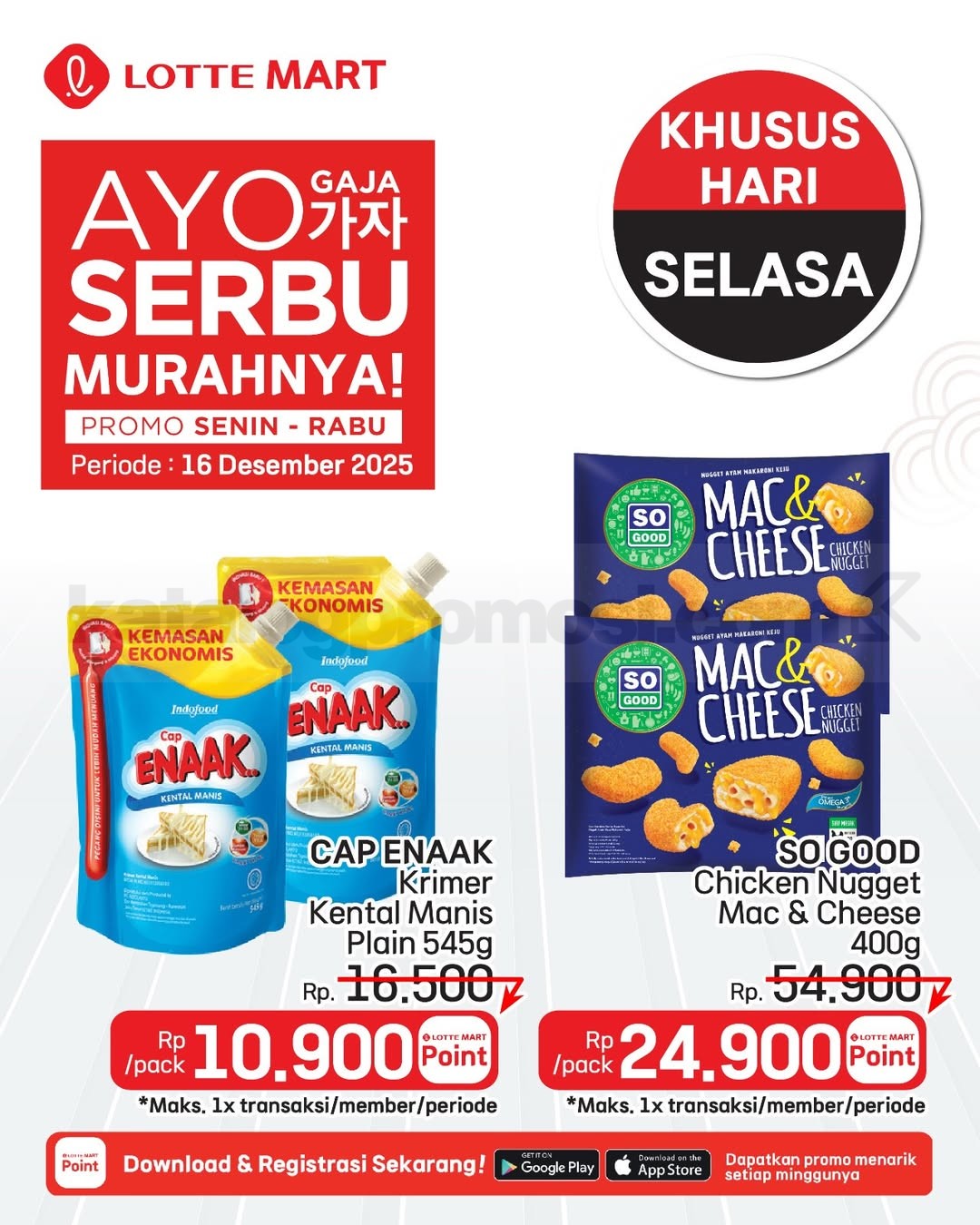 Setiap awal pekan, pastikan kamu cek promo terbaru dari Lotte Mart, karena selalu ada diskon menarik yang bikin belanja makin hemat dan menyenangkan. Bagi Smart Moms yang suka cari promo, jangan lupa cek produk-produk favoritmu di Lotte Mart dan nikmati diskon yang “love banget”! Kamu juga bisa menikmati promo Serbu ini secara online melalui aplikasi Lotte Mart Mall atau kunjungi website mereka di lottemartmall.co.id. Supaya lebih banyak untungnya, jangan lupa untuk download aplikasi Lotte Mart Point di Playstore atau iOS, dan dapatkan lebih banyak penawaran menarik lainnya!