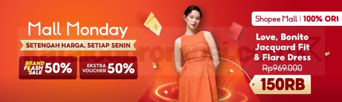 Promo ini berlaku eksklusif melalui aplikasi Shopee di fitur Shopee Mall, dengan jaminan produk 100% original. Selain potongan Brand Flash Sale 50%, kamu juga masih bisa menikmati ekstra voucher 50% yang otomatis bikin harga makin jatuh. Kombinasi diskon ganda ini bikin Mall Monday Love, Bonito jadi salah satu promo fashion paling dicari hari ini 💃