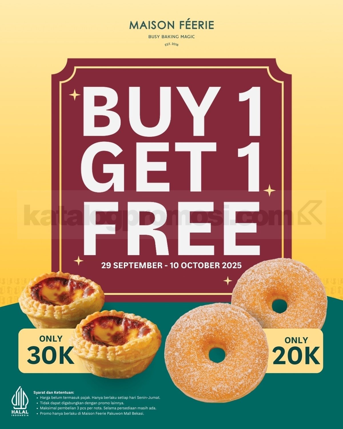Promo Maison Feerie Beli 1 Gratis 1 Khusus di Pakuwon Mall Bekasi Berlaku mulai 29 September s.d 10 Oktober 2025.