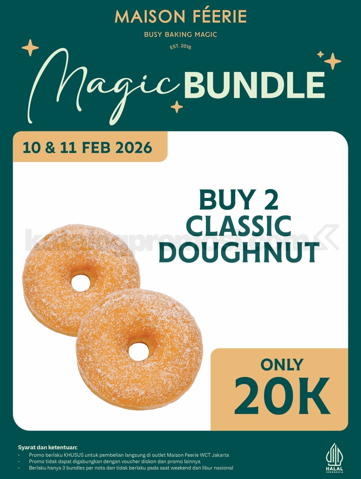 Promo Maison Feerie Magic Bundle mulai Rp. 20.000 Buy 2 aneka menu pilihan berlaku mulai tanggal 10 Februari 2026 – 20 Februari 2026 di Maison Feerie WCT Jakarta.