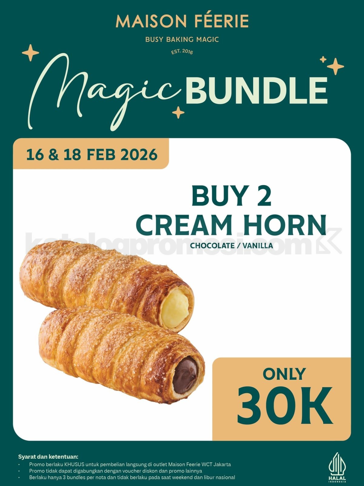 - Tanggal 16–18 Februari 2026 – Buy 2 Cream Horn (Choco/Vanilla) Rp. 30.000