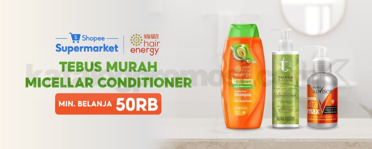 Promo Makarizo Hair Energy Tebus Murah Micellar Conditioner dengan belanja Rp. 50.000 berlaku mulai tanggal 26 Maret 2026 – 31 Maret 2026 di Shopee Supermarket.